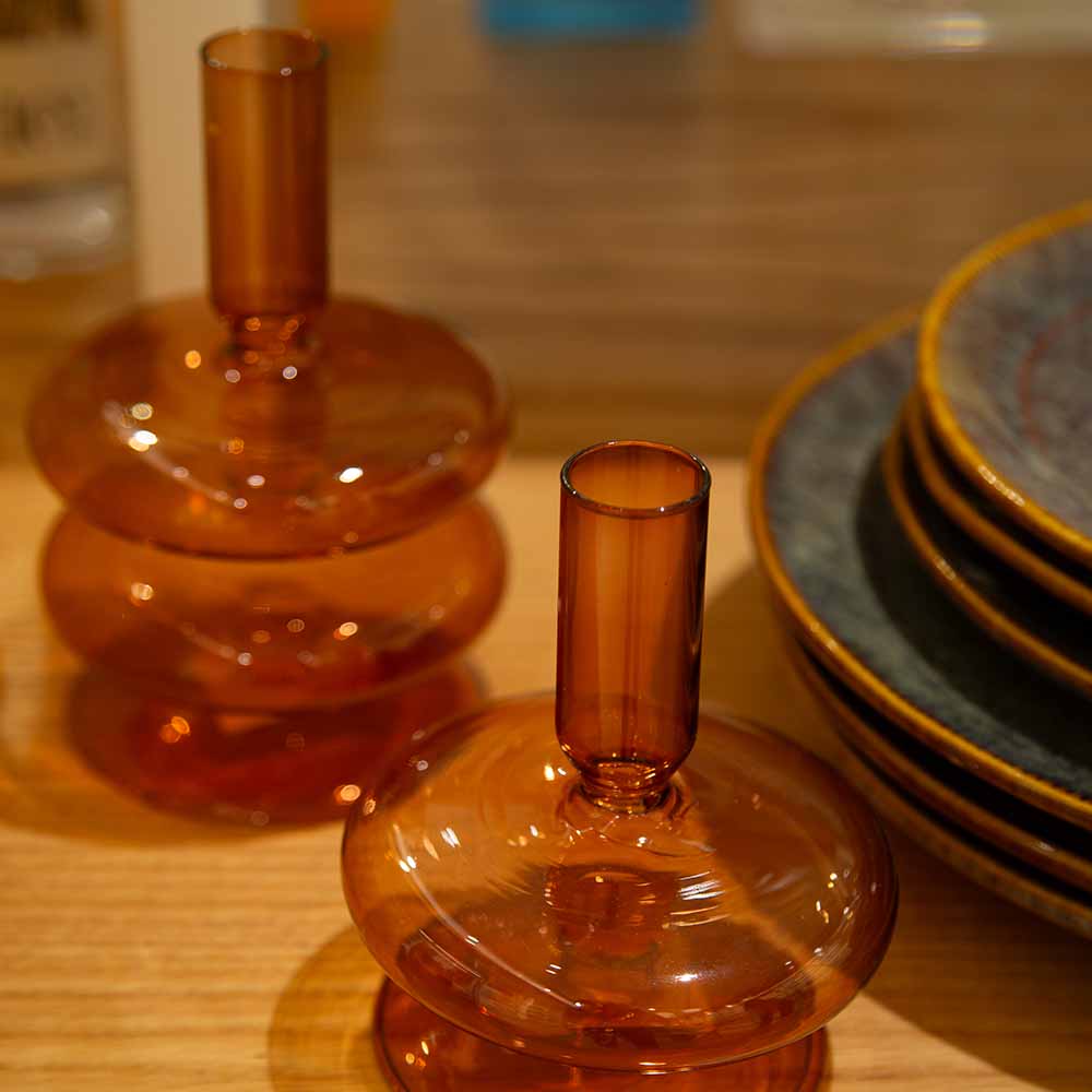 CASTIÇAL DE VIDRO CIRCLE LARANJA 9 X 11(H) CM