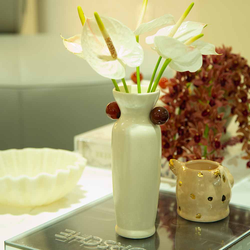 Adicione elegância à sua casa com o Vaso de Cerâmica Artesanal Ágata. Com 24 cm de altura, esta peça autoral da Lolahome combina a cerâmica com a beleza da pedra natural de ágata. Um vaso único, perfeito para completar sua decoração.