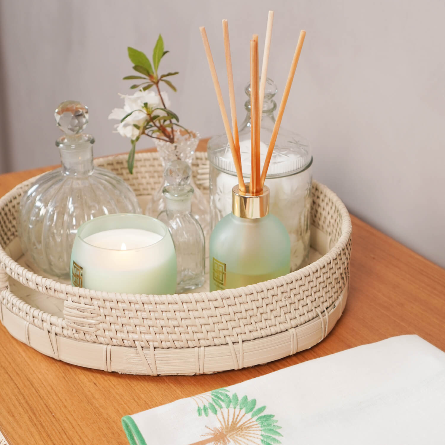 No seu lavabo, coloque a toalha em uma bandeja, junto com uma vela ou então um potinho com flores secas aromatizadas. A dica especial é: use junto com nossa vela perfumada Lola ou com a Aurora, elas foram desenvolvidas para aguçar suas sensações e tem um perfume que fica por muito tempo no ambiente.