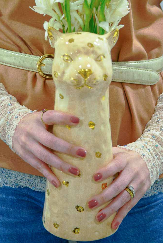 VASO CERÂMICA ARTESANAL COM OURO BEGE LEOPARDO G 22CM