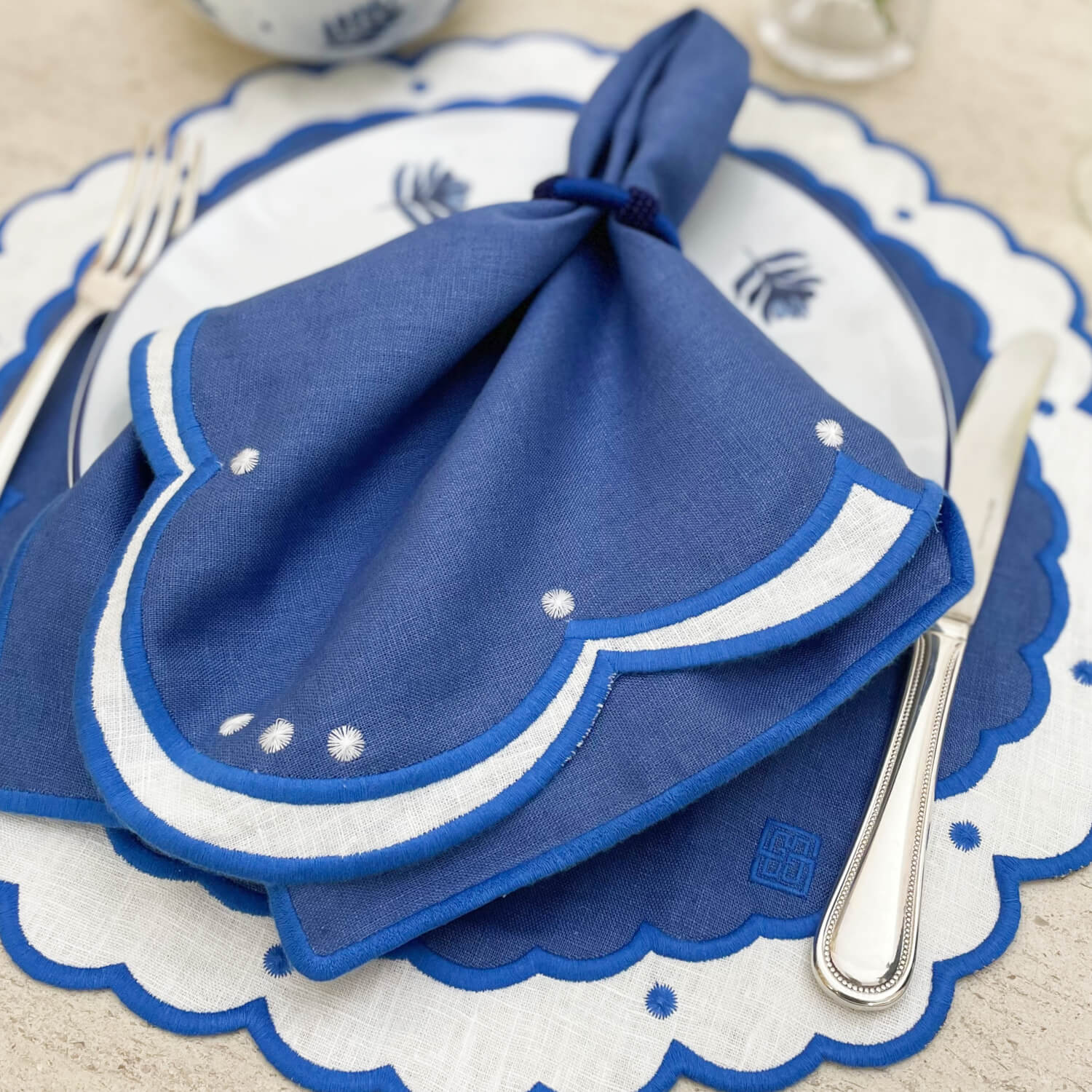 GUARDANAPO LINHO PURO ROYAL AZUL E MARFIM 50X50 CM