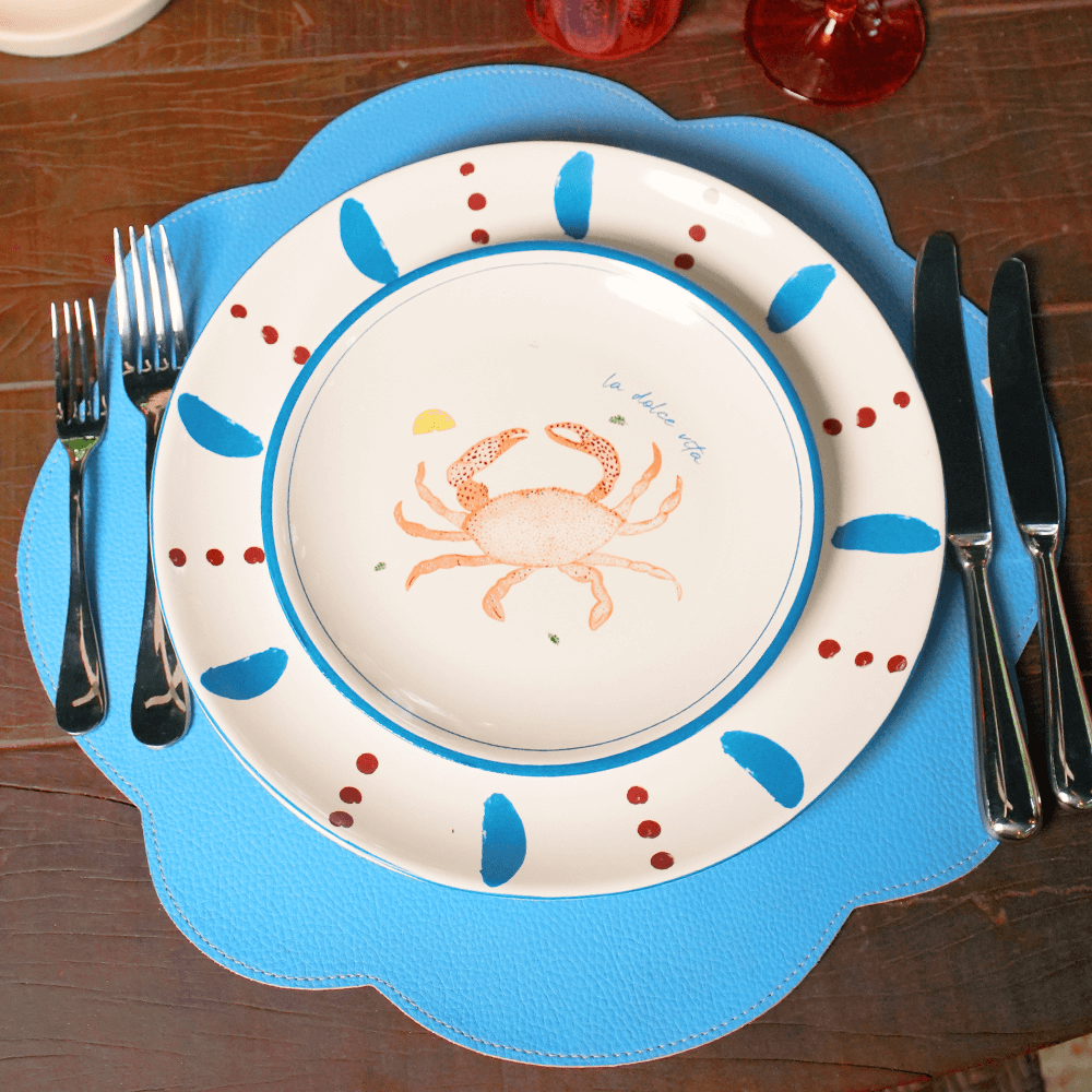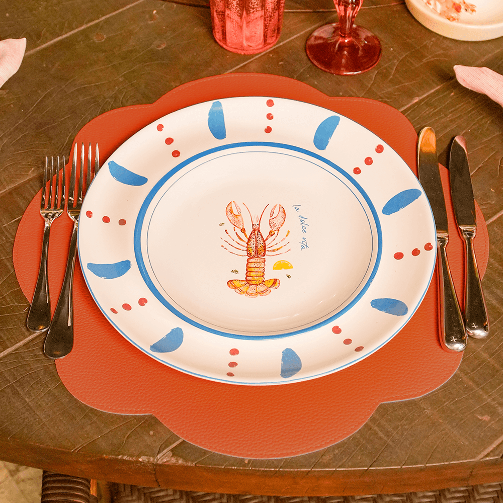 JOGO AMERICANO DUPLA FACE IMPERMEÁVEL REDONDO FLOR LARANJA E AZUL 42 CM