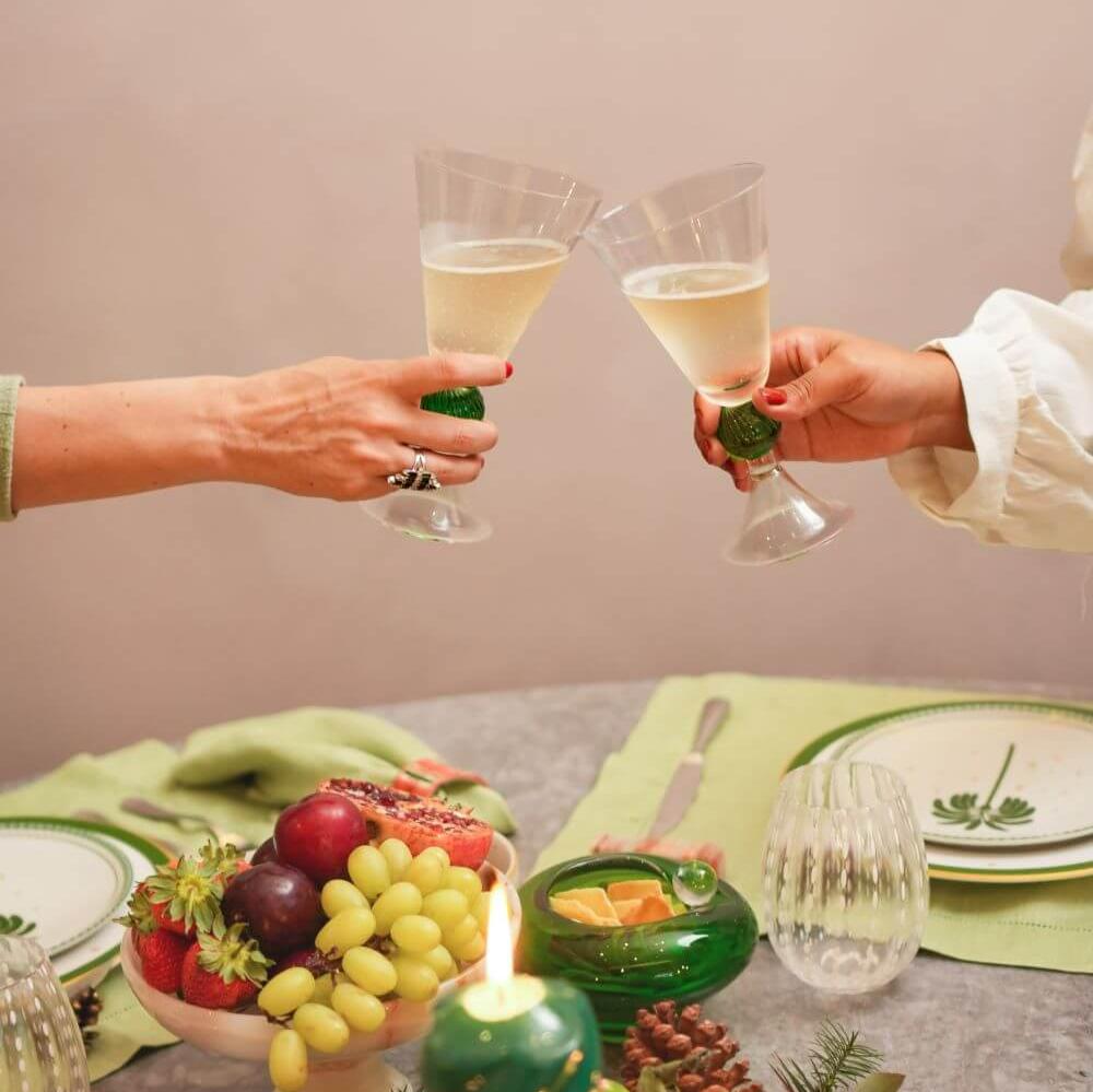TAÇA DE VIDRO DECO VERDE 10,5 (d) x 19 (h) cm