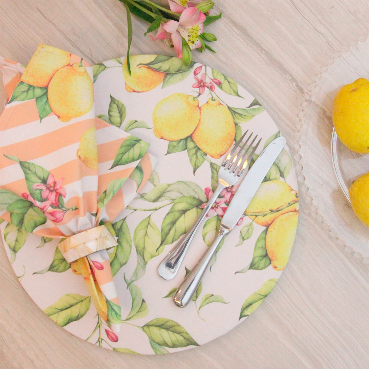 Use a Capa de Sousplat Limão Siciliano Fresh com o guardanapo da mesma linha e o Porta Guardanapo Madrepérola e arrase no composé da mesa!
