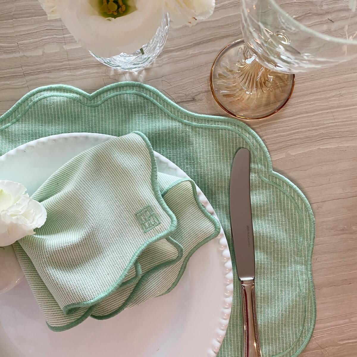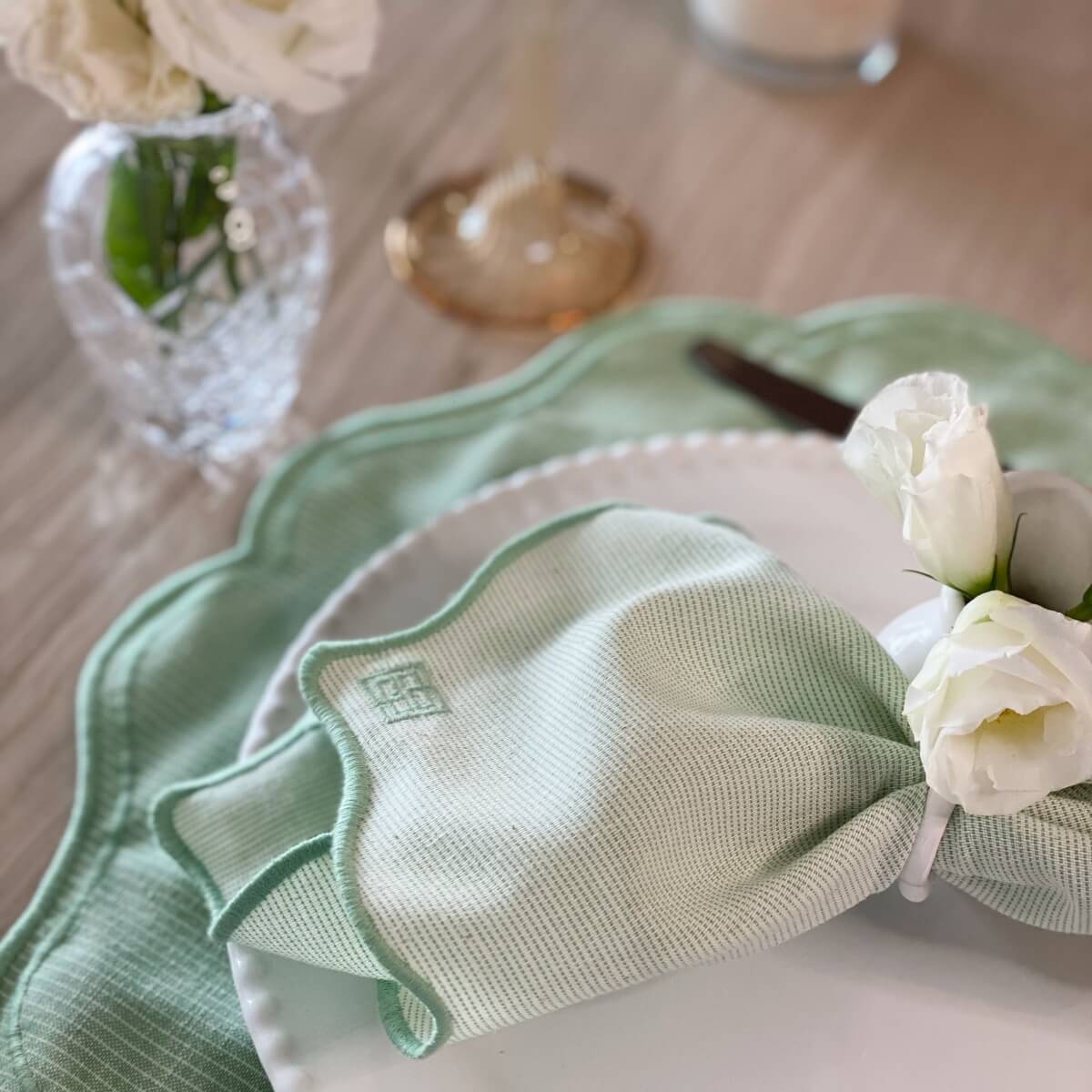 GUARDANAPO BORDADO AMAZONITA VERDE 45X45CM