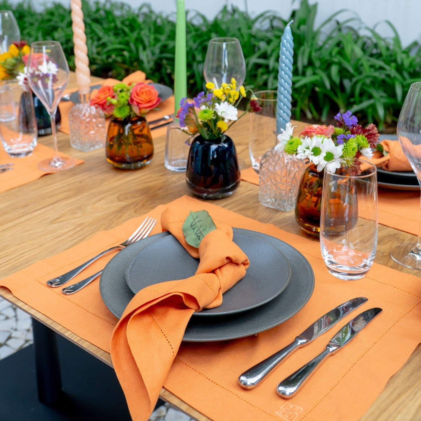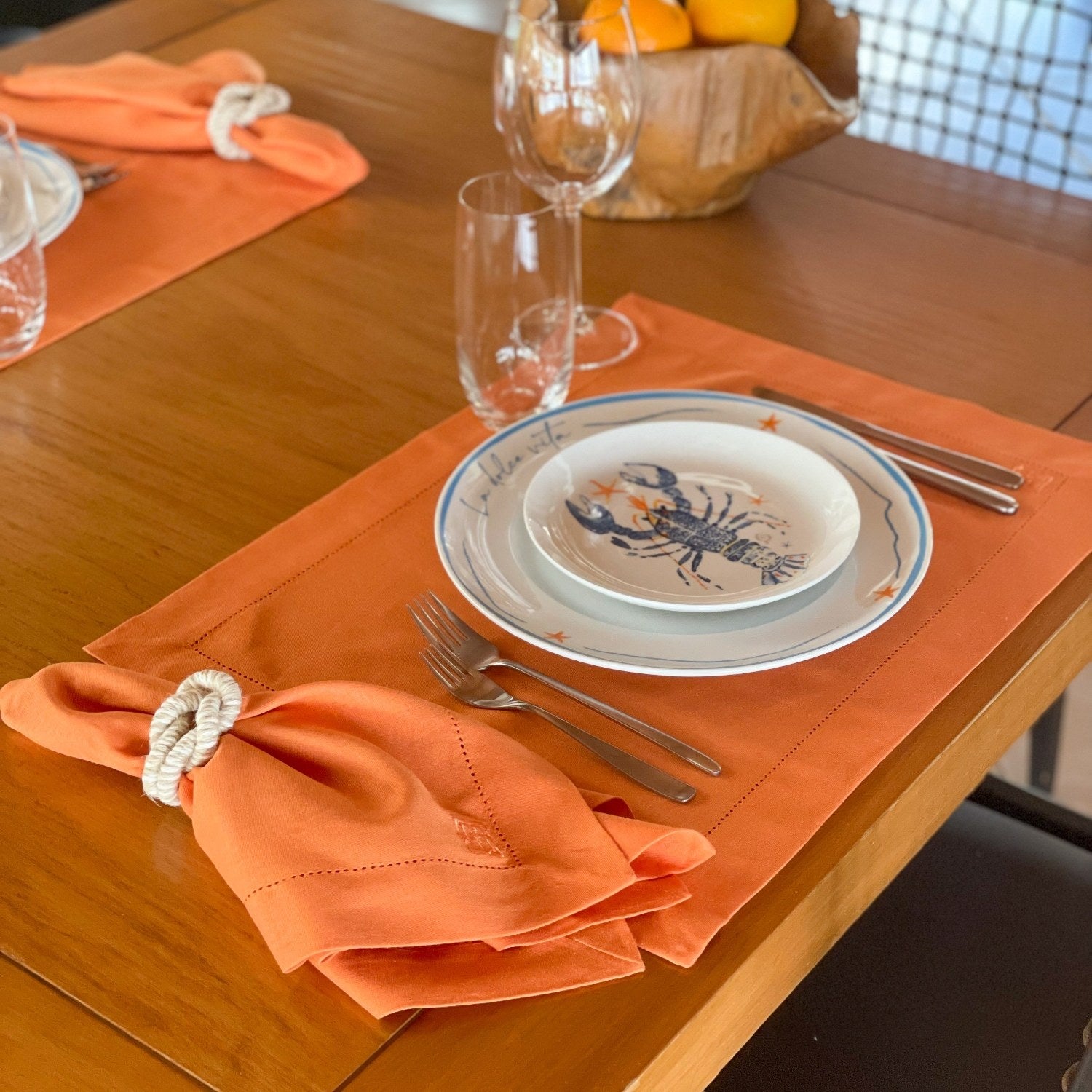 GUARDANAPO LINHO VISCO BARRA LARGA PREMIUM LARANJA 55X55 CM