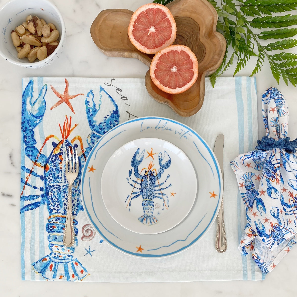 La Dolce Vita foi criada para a estação mais alegre do ano com ilustrações de lagosta e caranguejo nos pratos de sobremesa. A cerâmica segue uma padronagem da linha orgânica, peças pintadas à mão, tornando-se única e especial.