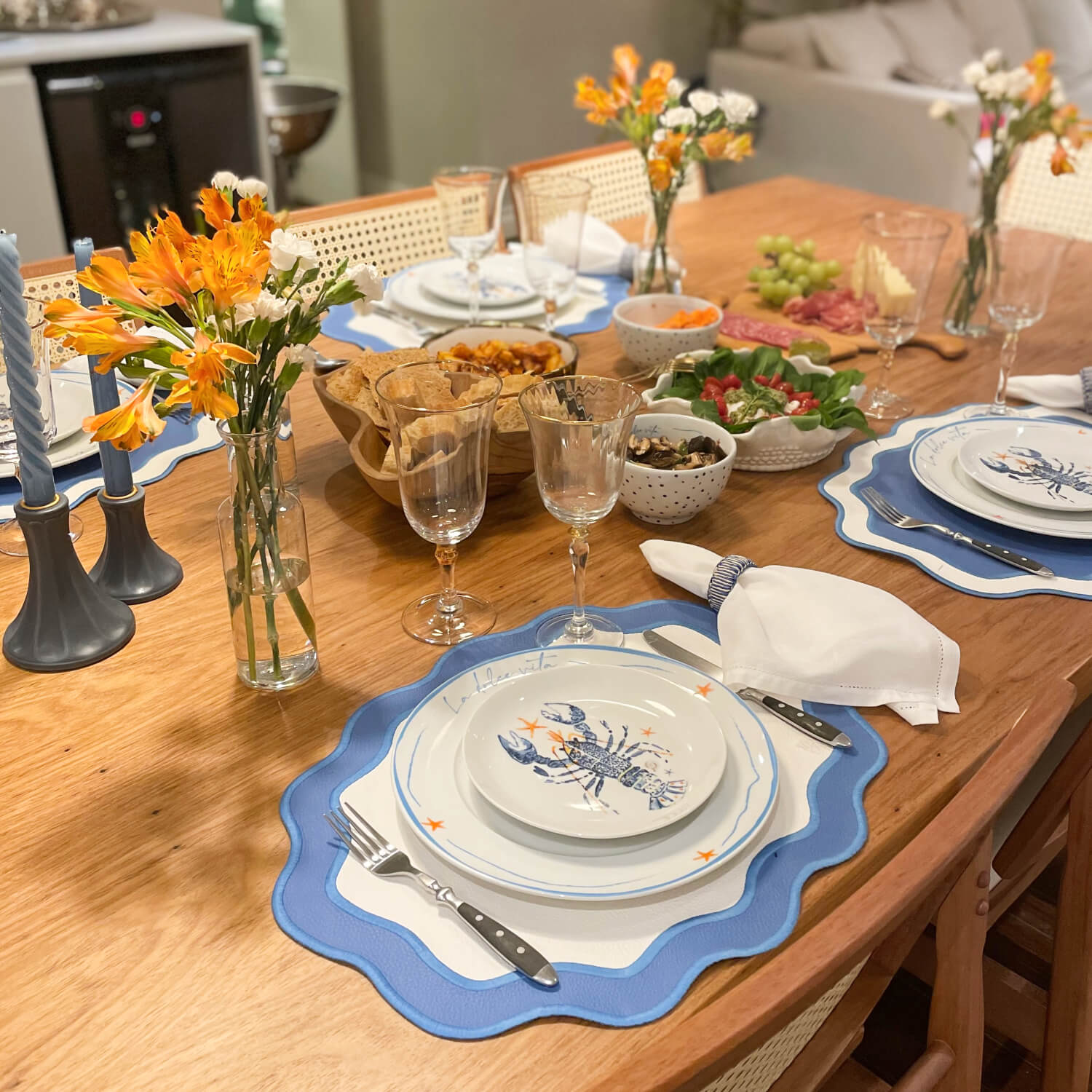 JOGO AMERICANO IMPERMEÁVEL DUO BRANCO E AZUL 46X37 CM