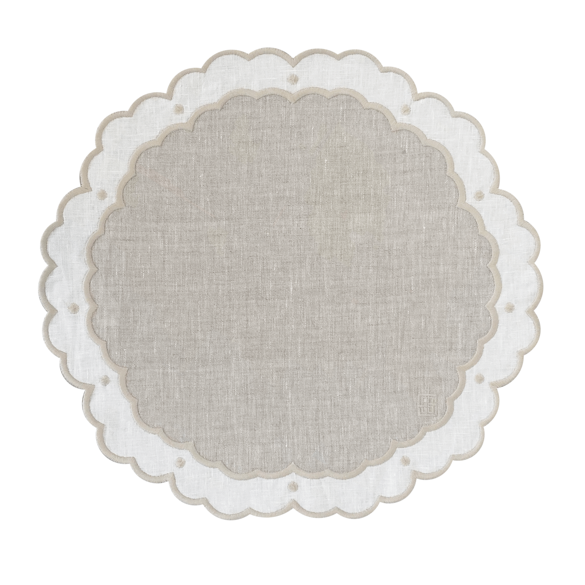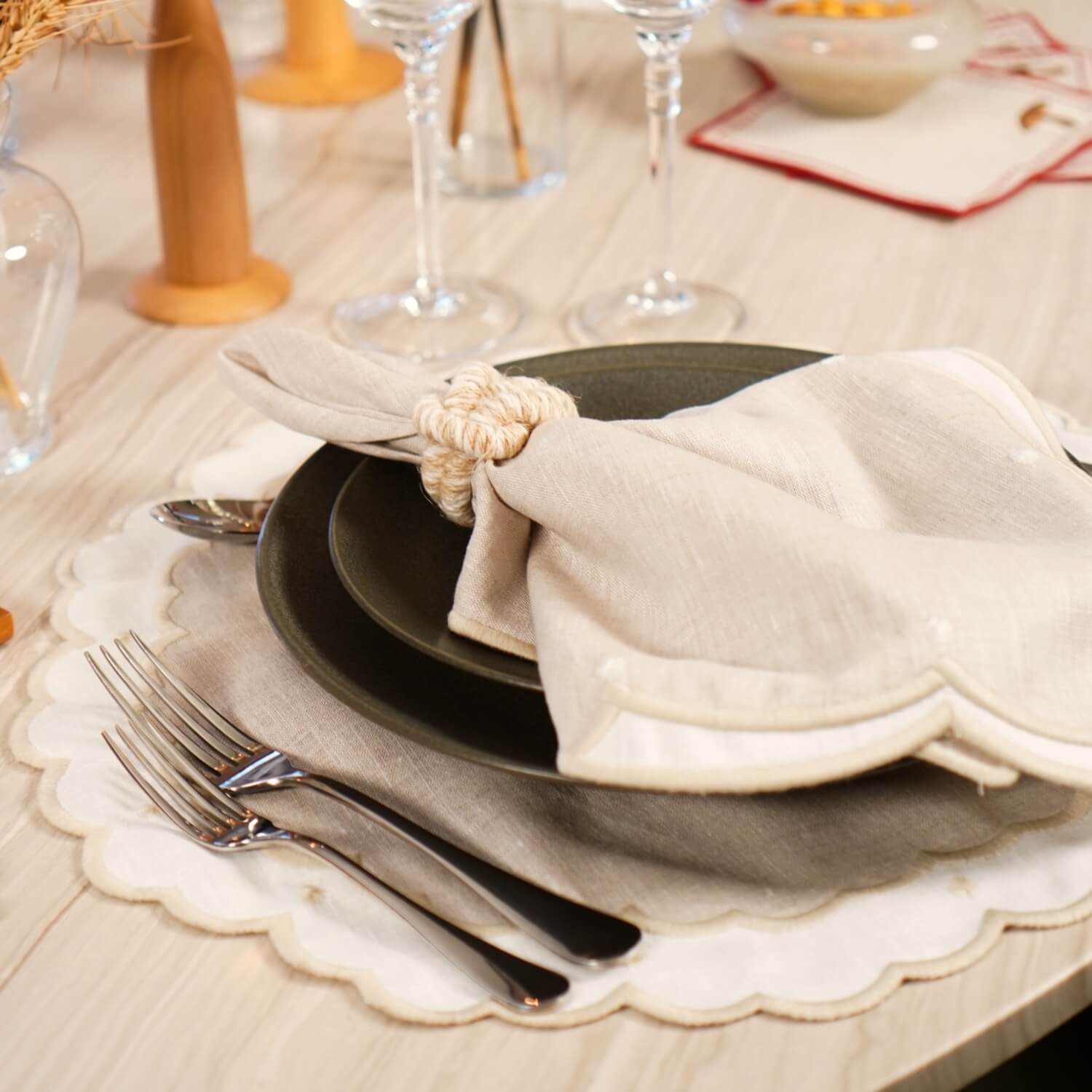 • JOGO AMERICANO DE LINHO PURO ROYAL BEGE E MARFIM 43 CM
