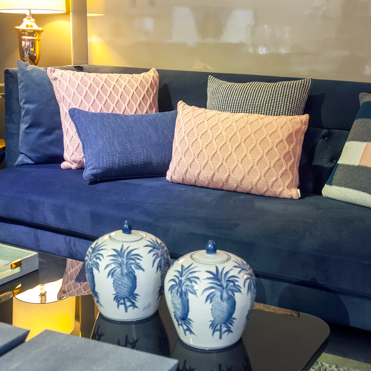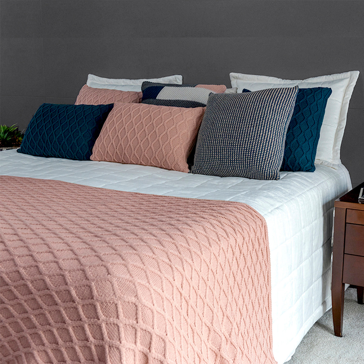 CAPA DE ALMOFADA TRICOT PLUS GOTAS ROSA 50 X 50 CM