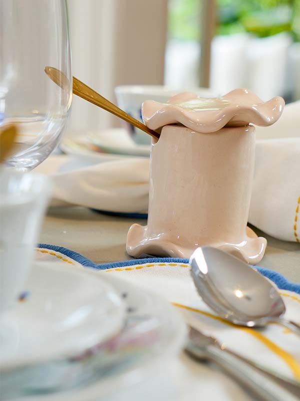 AÇUCAREIRO CERÂMICA ARTESANAL BABADO ROSA