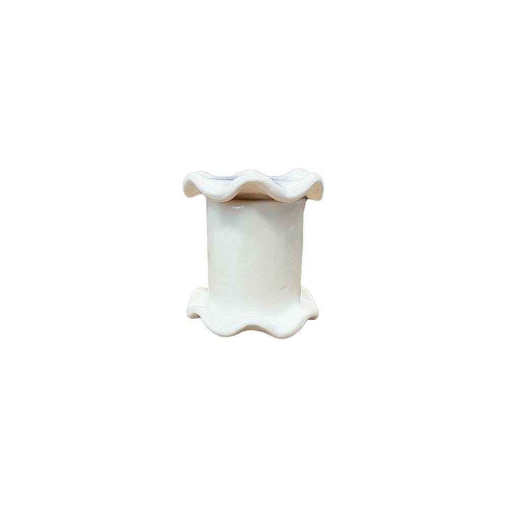 CASTIÇAL CERÂMICA ARTESANAL BABADO MARFIM 20CM