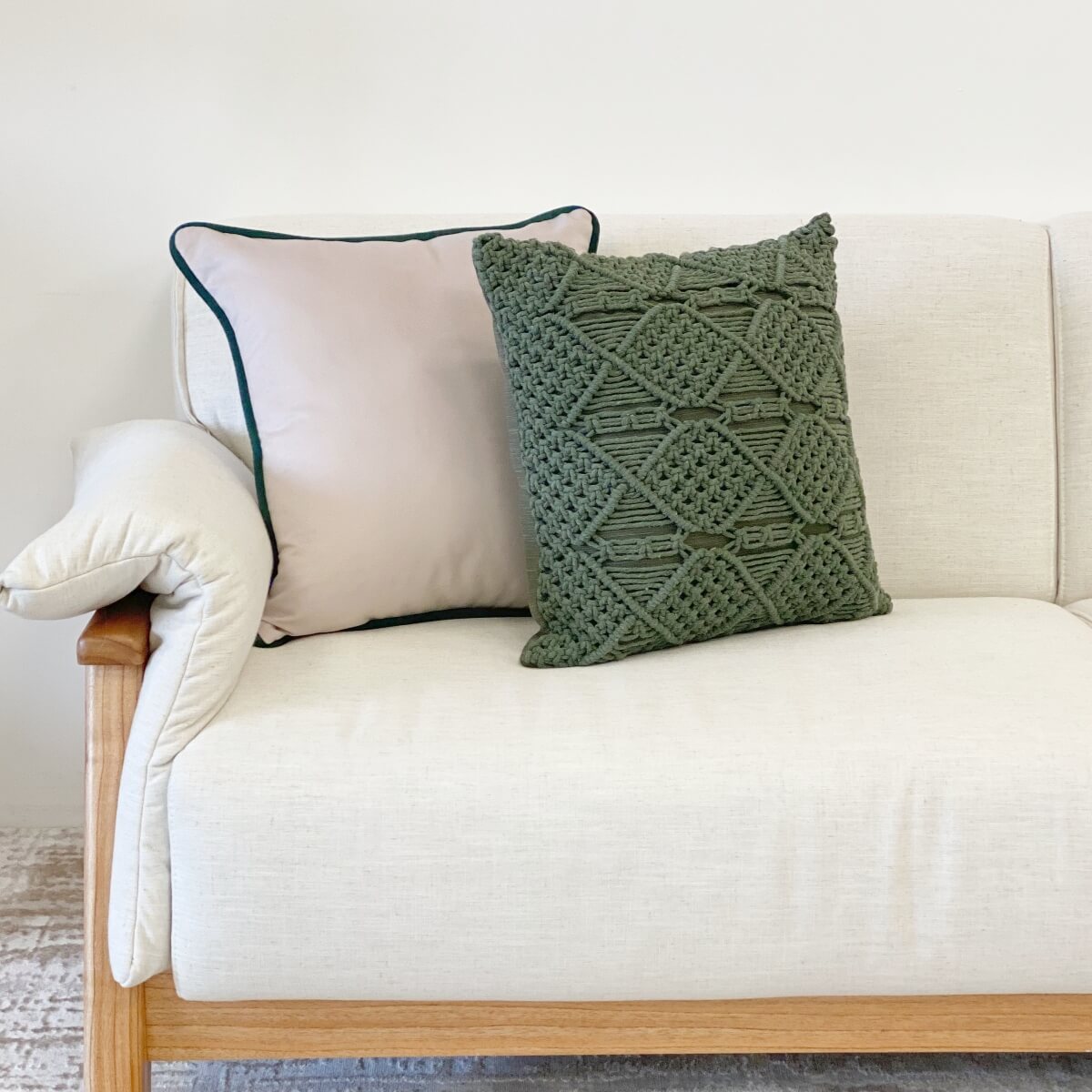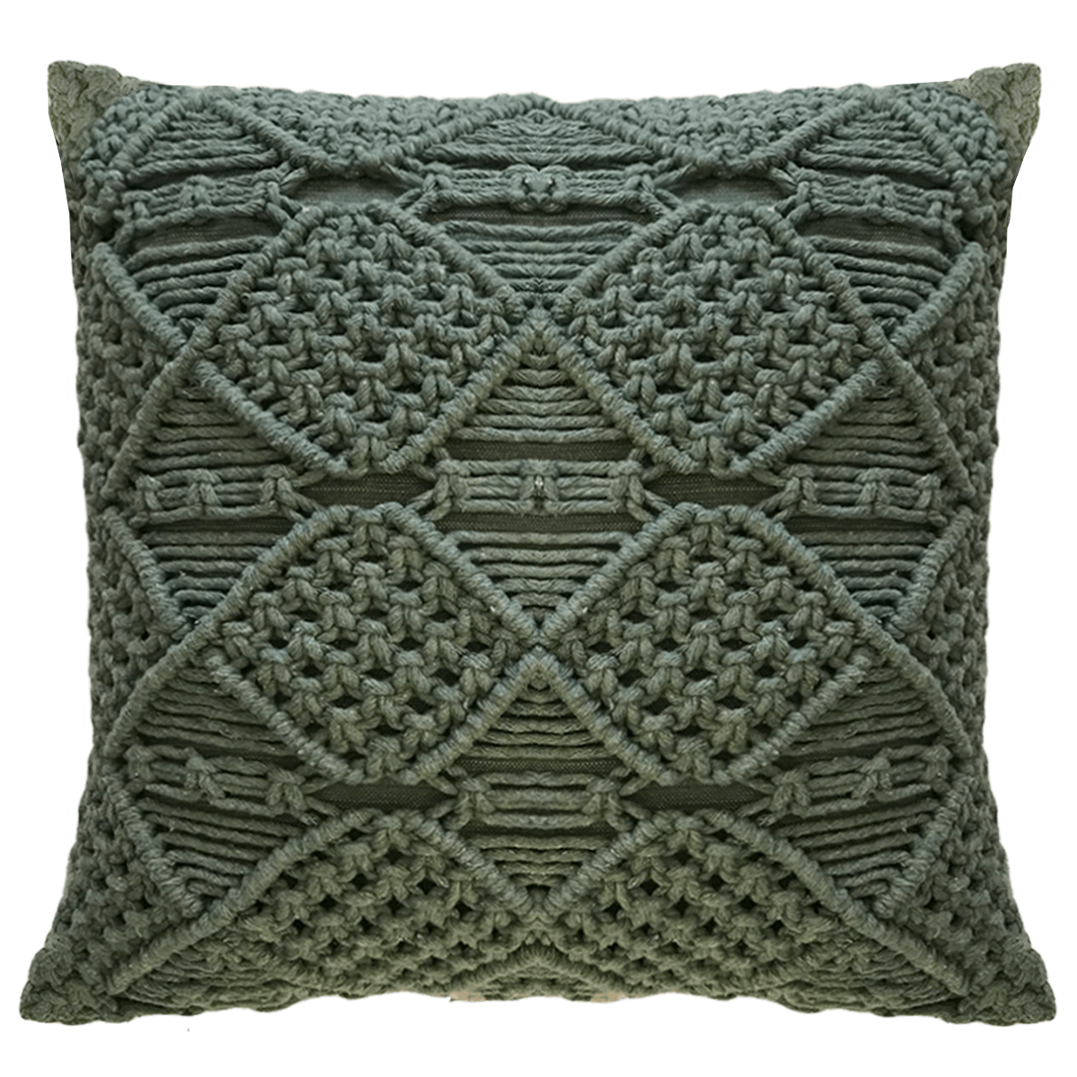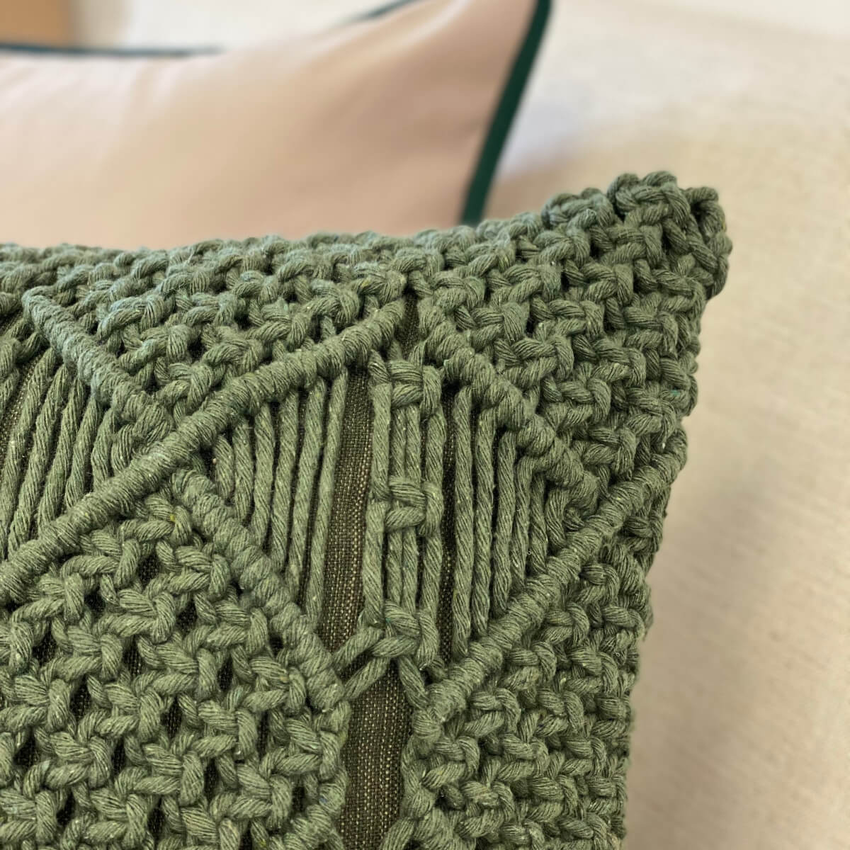 CAPA DE ALMOFADA DE MACRAMÊ VERDE 50X50CM