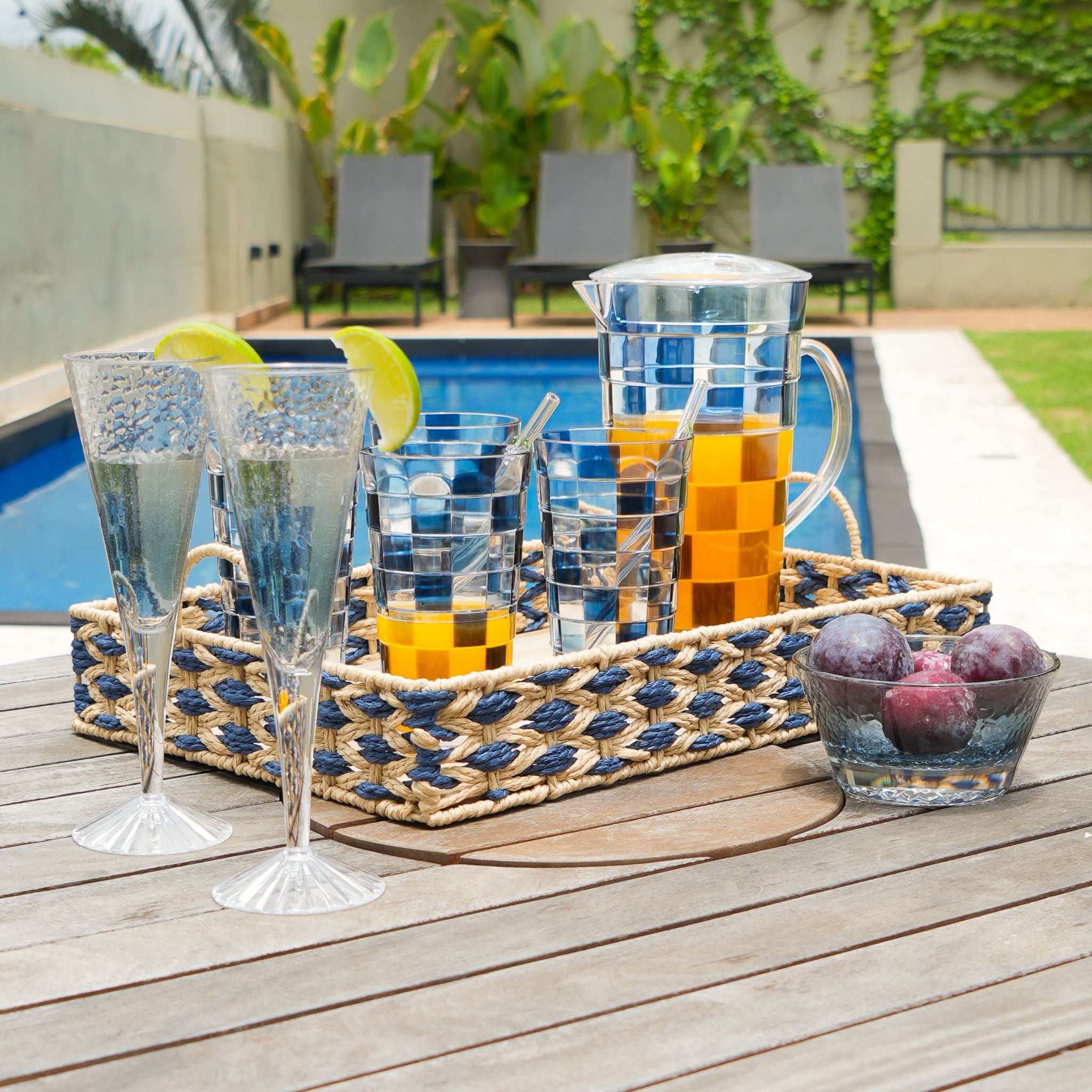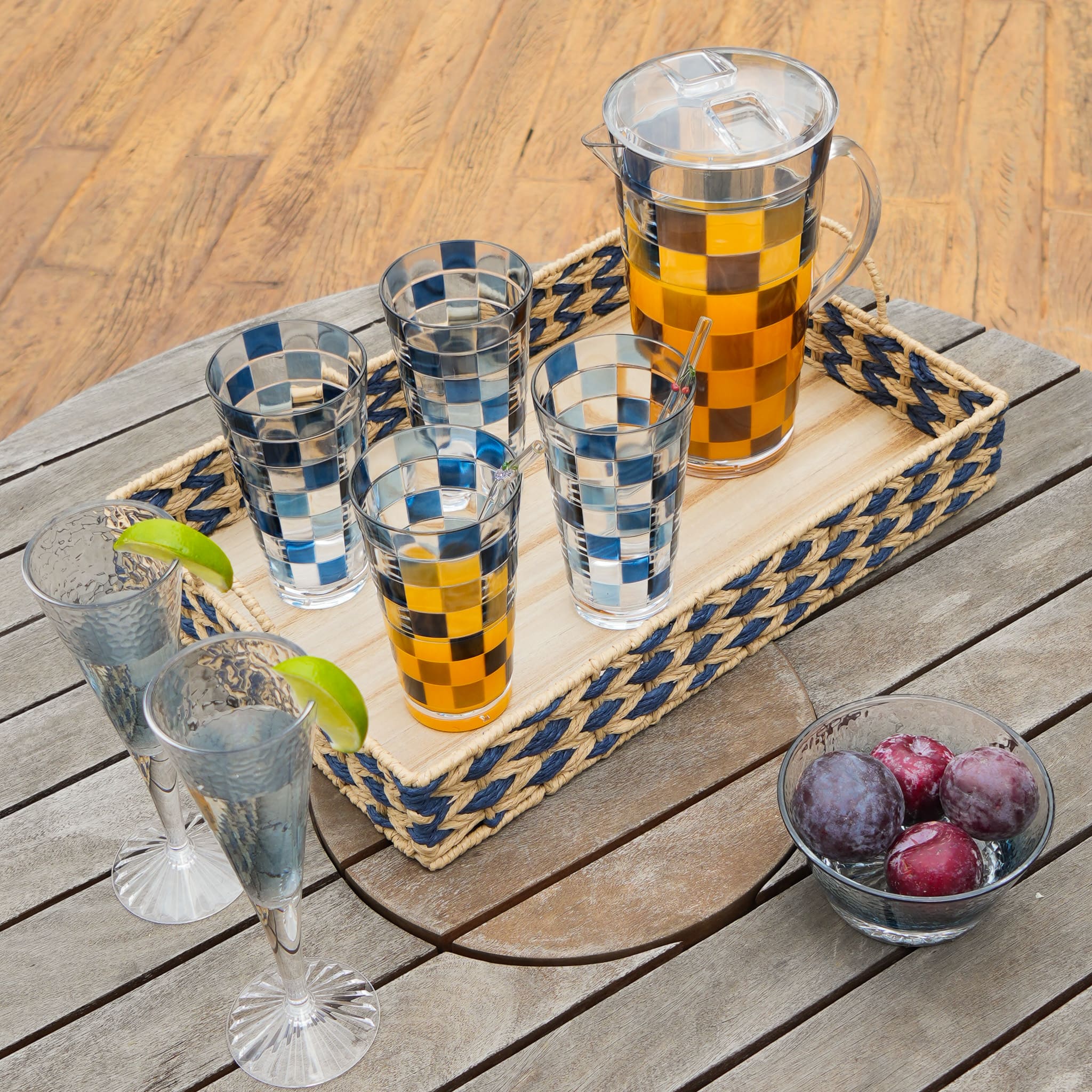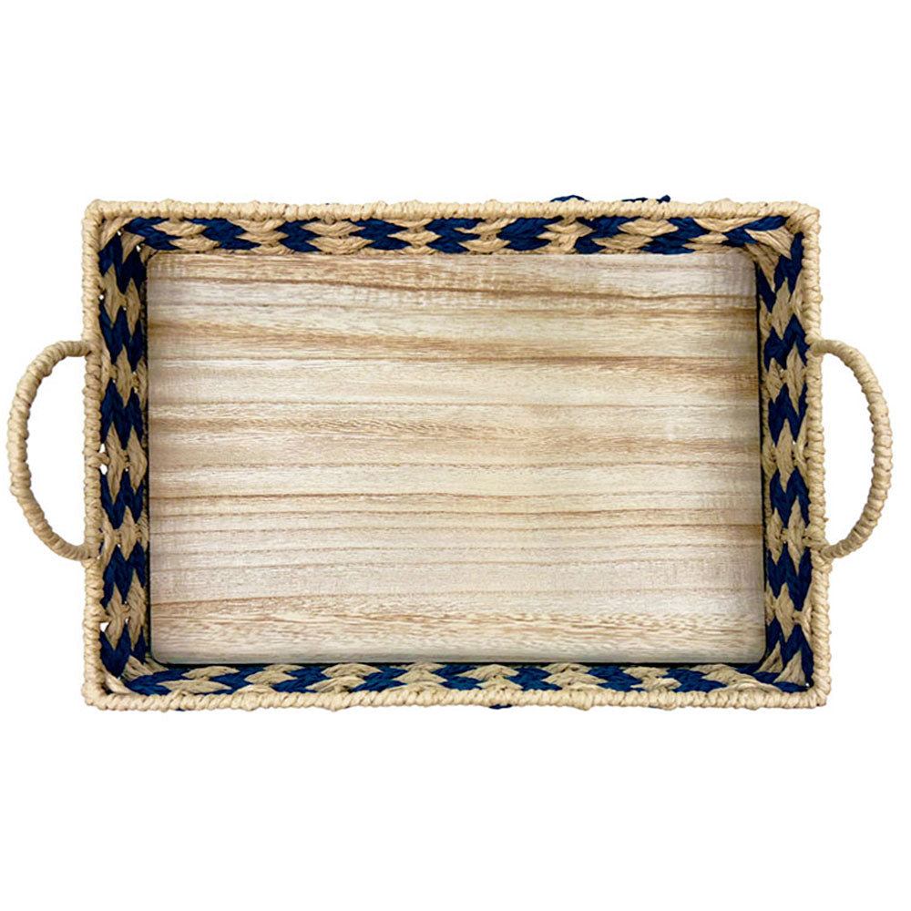 BANDEJA EM MADEIRA PALHA ENTRELACE AZUL G 48x32CM