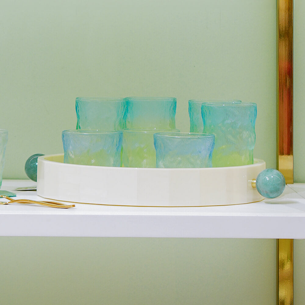Adicione a bandeja ao seu bar com bebidas, taças, ou em um aparador, servindo água ou café.
