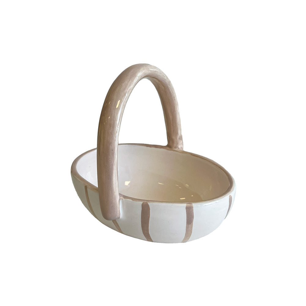 Cestinha de Cerâmica Listras Bege