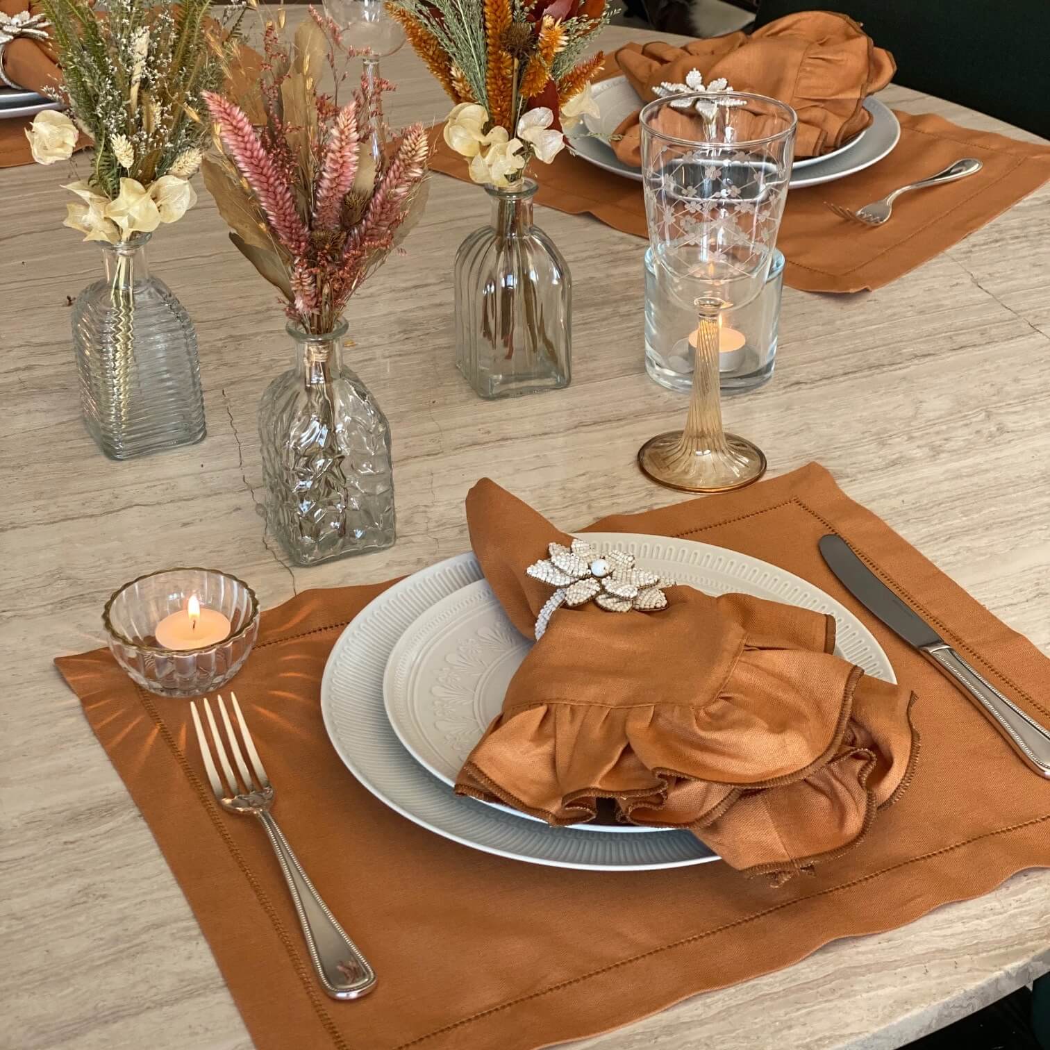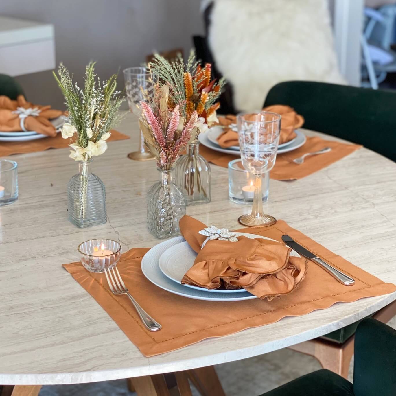 O tom de caramelo desse jogo americano está super em alta no decor. É a cor queridinha do momento, e não é pra menos né? Um tom acolhedor, intimista e ao mesmo tempo moderno.