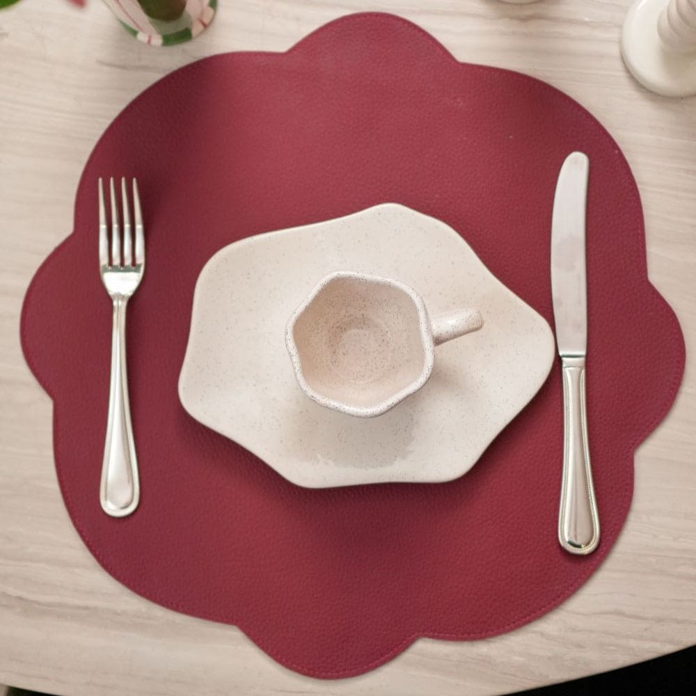 JOGO AMERICANO DUPLA FACE IMPERMEÁVEL REDONDO FLOR ROSA E VINHO 42 CM