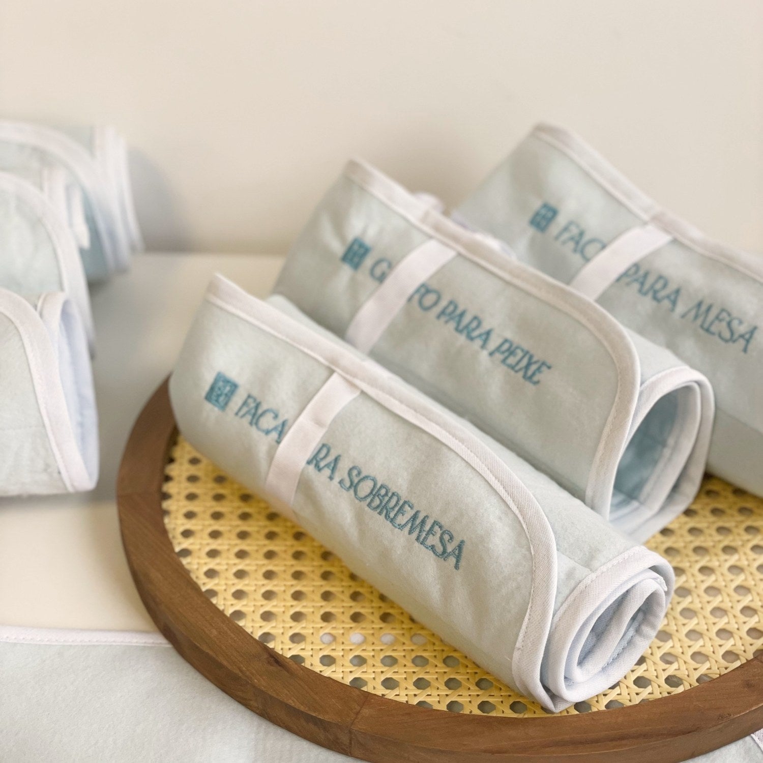 PORTA TALHERES PARA FAQUEIRO EM FELTRO BORDADO AZUL 11 PEÇAS
