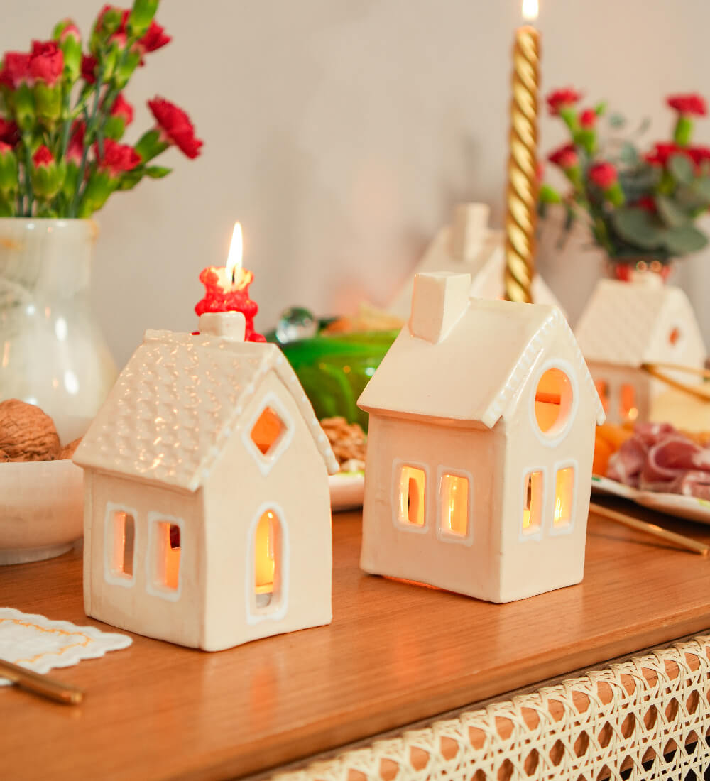 A casinha porta-vela de cerâmica é perfeita para iluminar a noite de Natal, criando uma atmosfera mágica e acolhedora. Com sua luz suave, ela encanta as crianças e traz um toque lúdico à decoração festiva.