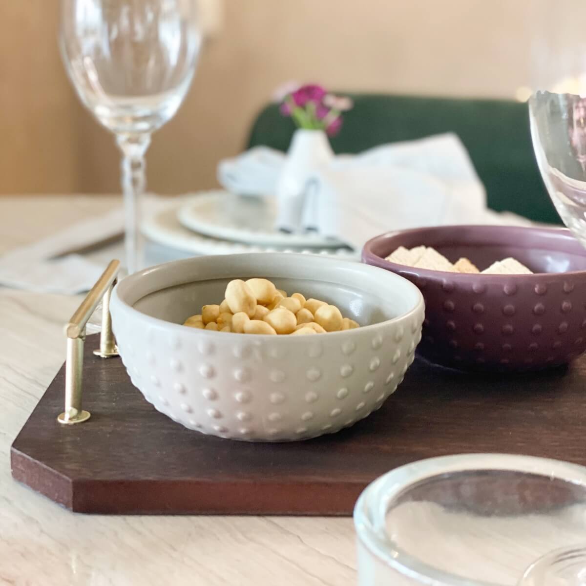 Peças texturizadas e estilosas como esses potinhos de cerâmica de bolinhas, são acessórios coringa!