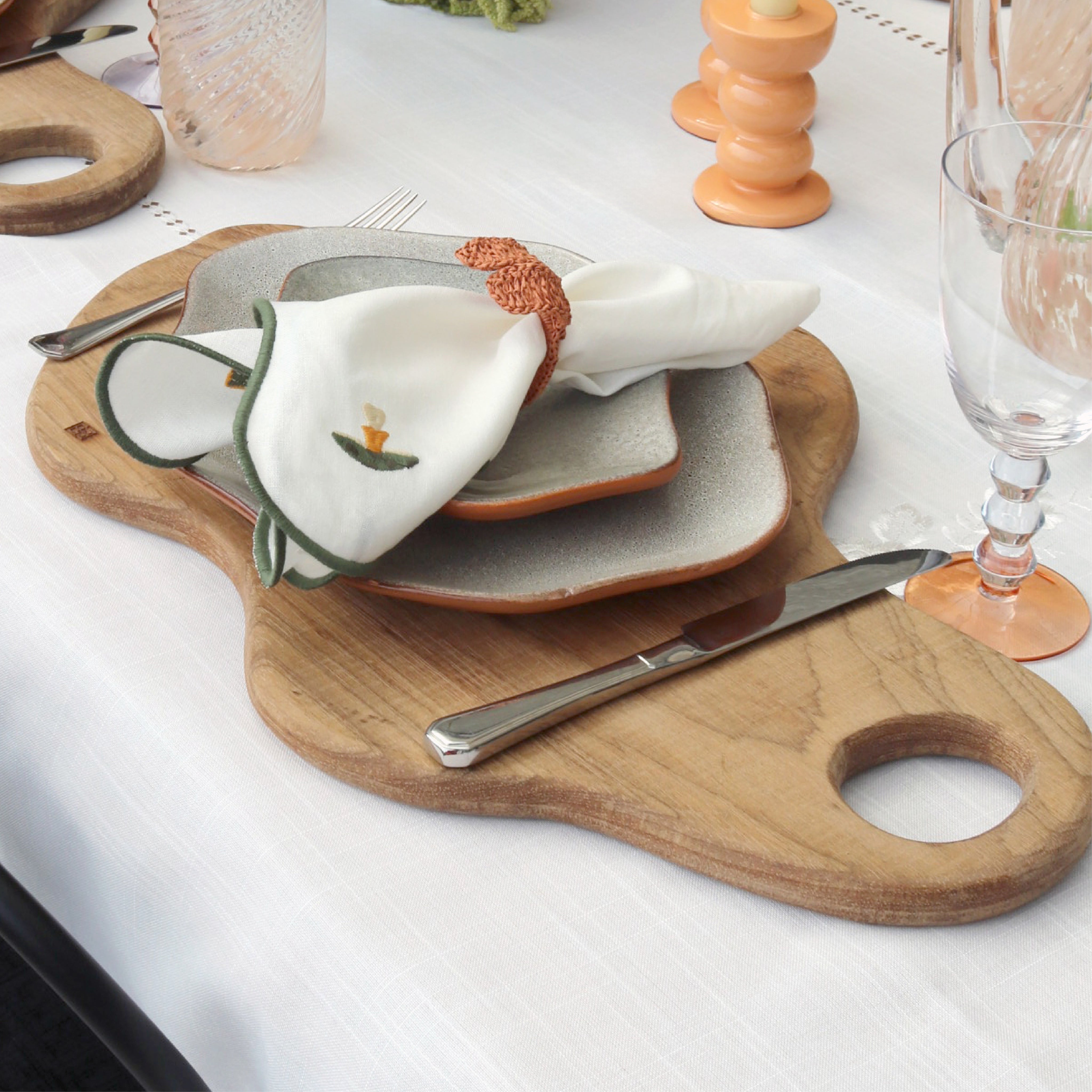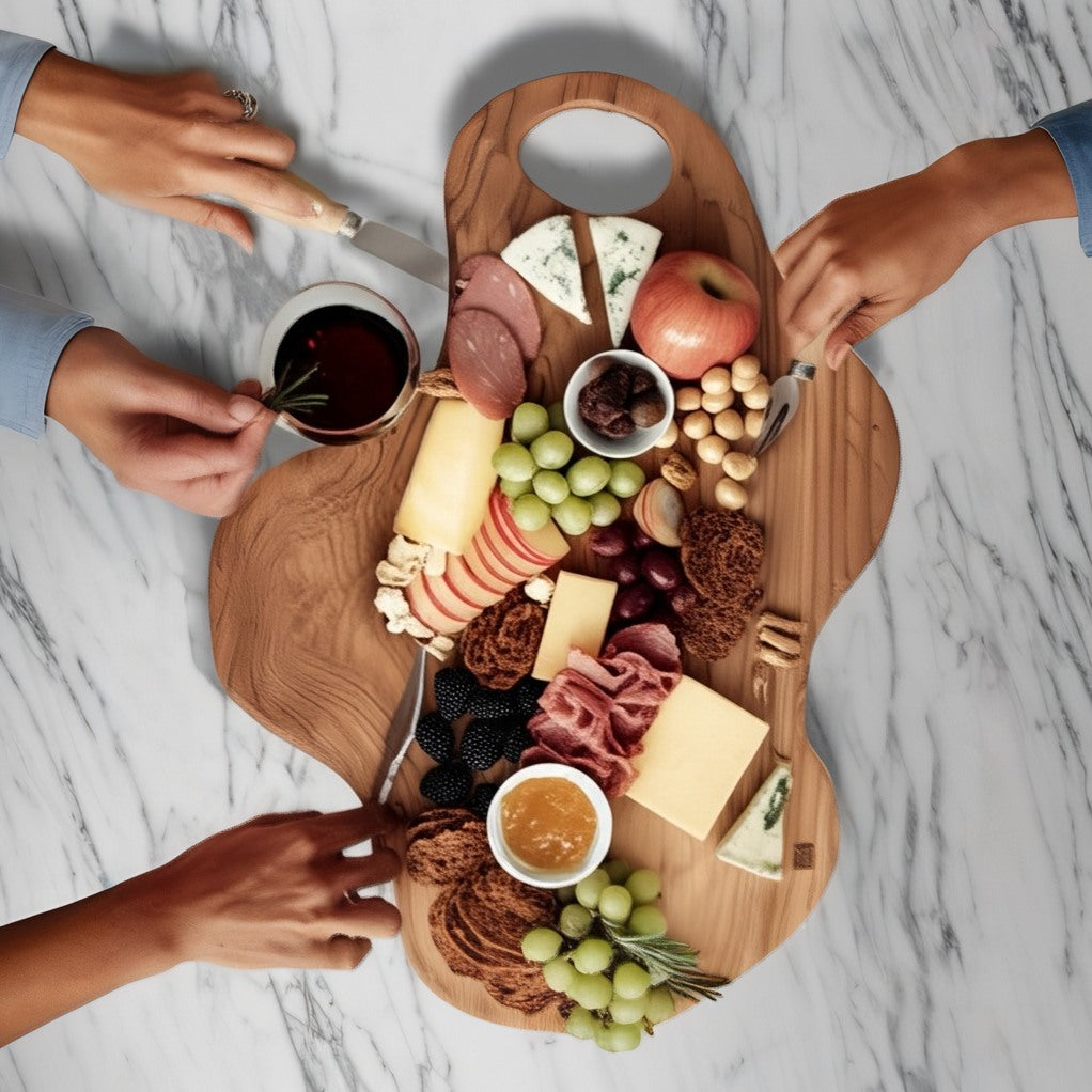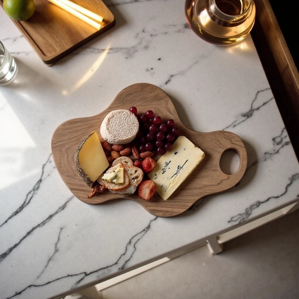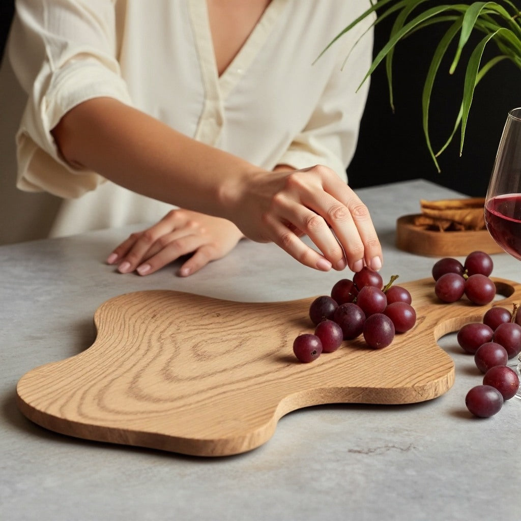 A tábua de madeira é um item versátil que vai muito além de cortar alimentos! Você pode usá-la como base para servir petiscos, queijos e charcutaria, criando um visual rústico e acolhedor. Combine tábuas de tamanhos diferentes da mesma linha para montar uma composição harmoniosa na mesa, especialmente em reuniões e eventos. Para um toque moderno, misture materiais: use tábuas de madeira com outras de mármore ou cerâmica, criando um contraste elegante entre o natural e o sofisticado. Aposte em formatos variados para criar camadas e dar destaque aos alimentos.