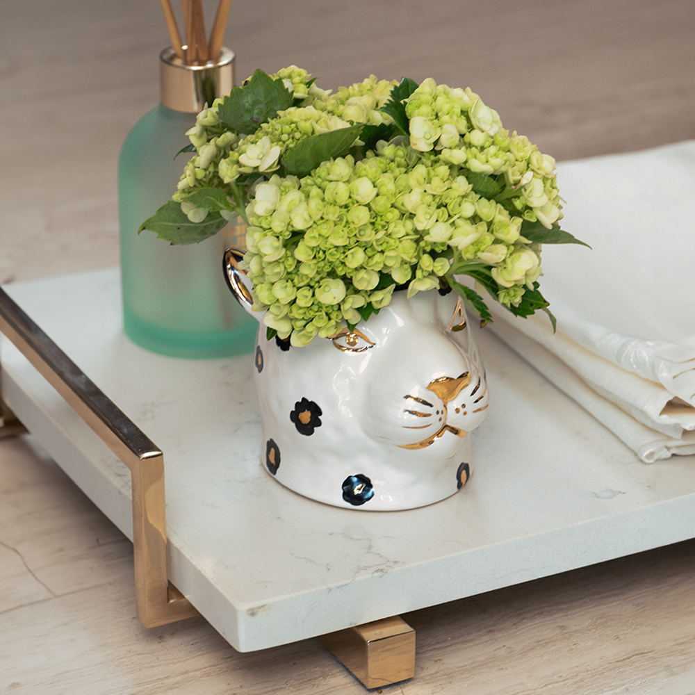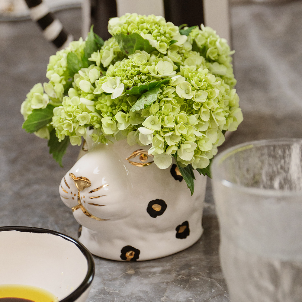 VASO CERÂMICA ARTESANAL COM OURO LEOPARDO P 7CM