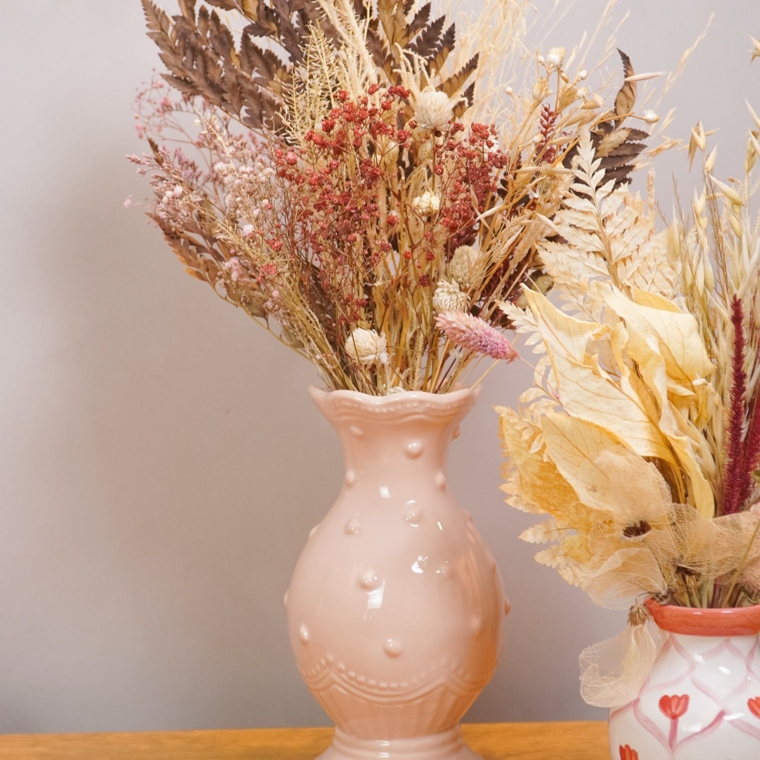 VASO DE CERÂMICA FEITO À MÃO BOLINHAS ROSA 21CM