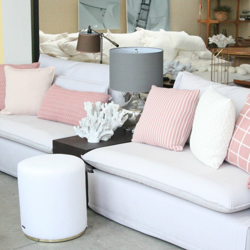 Combine a almofada Tricot Plus Risca de Giz com a almofada Grid e outras almofadas lisas nos mesmos tons. Não esqueça da mantinha de tricot para completar a composição!