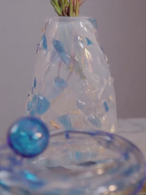 BOMBONIERE BUBBLE DE VIDRO SOPRADO À MÃO TURQUESA