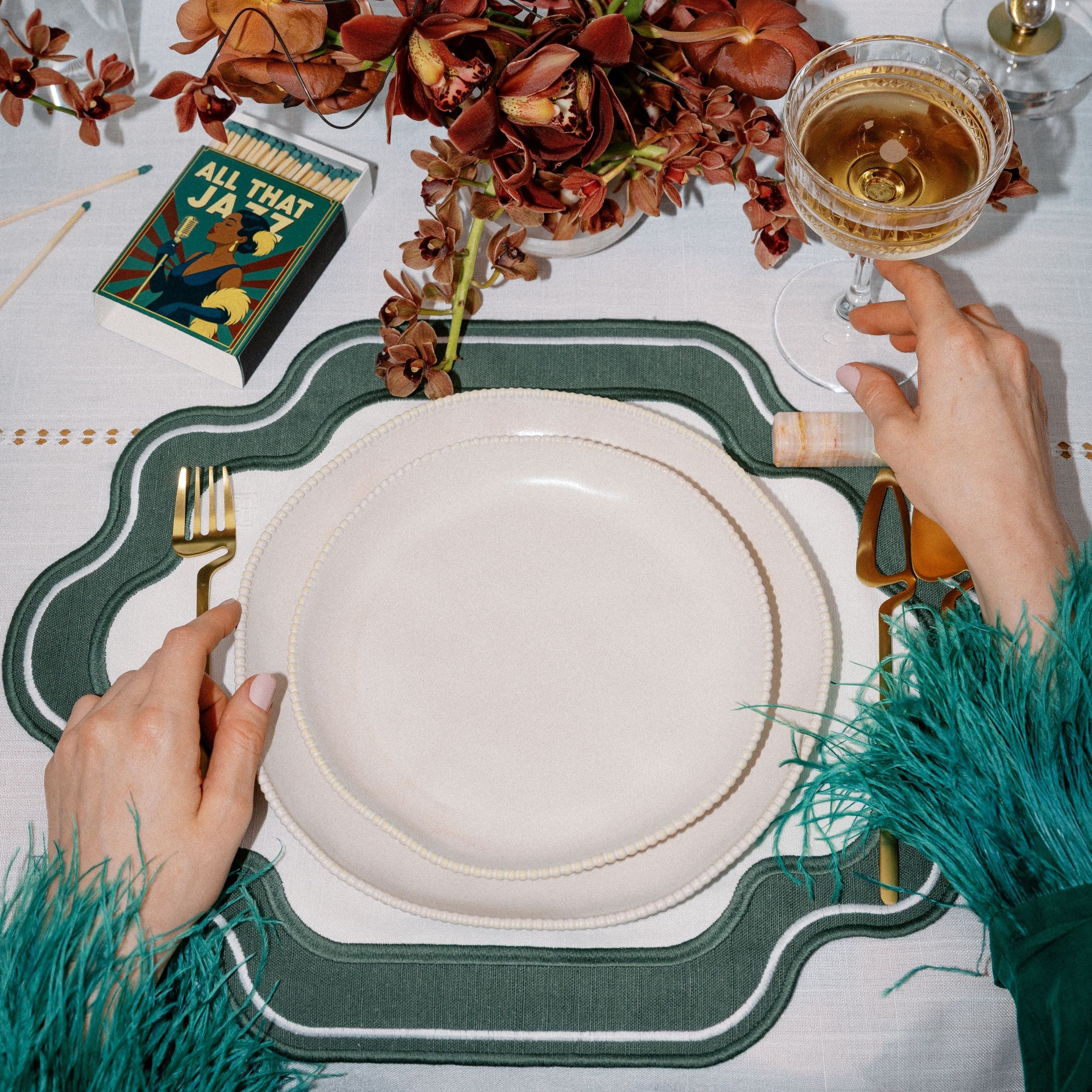 Para combinar com sua mesa posta de jazz, pratos de cerâmica, descanso de talher, porta guardanapo e bandejas
