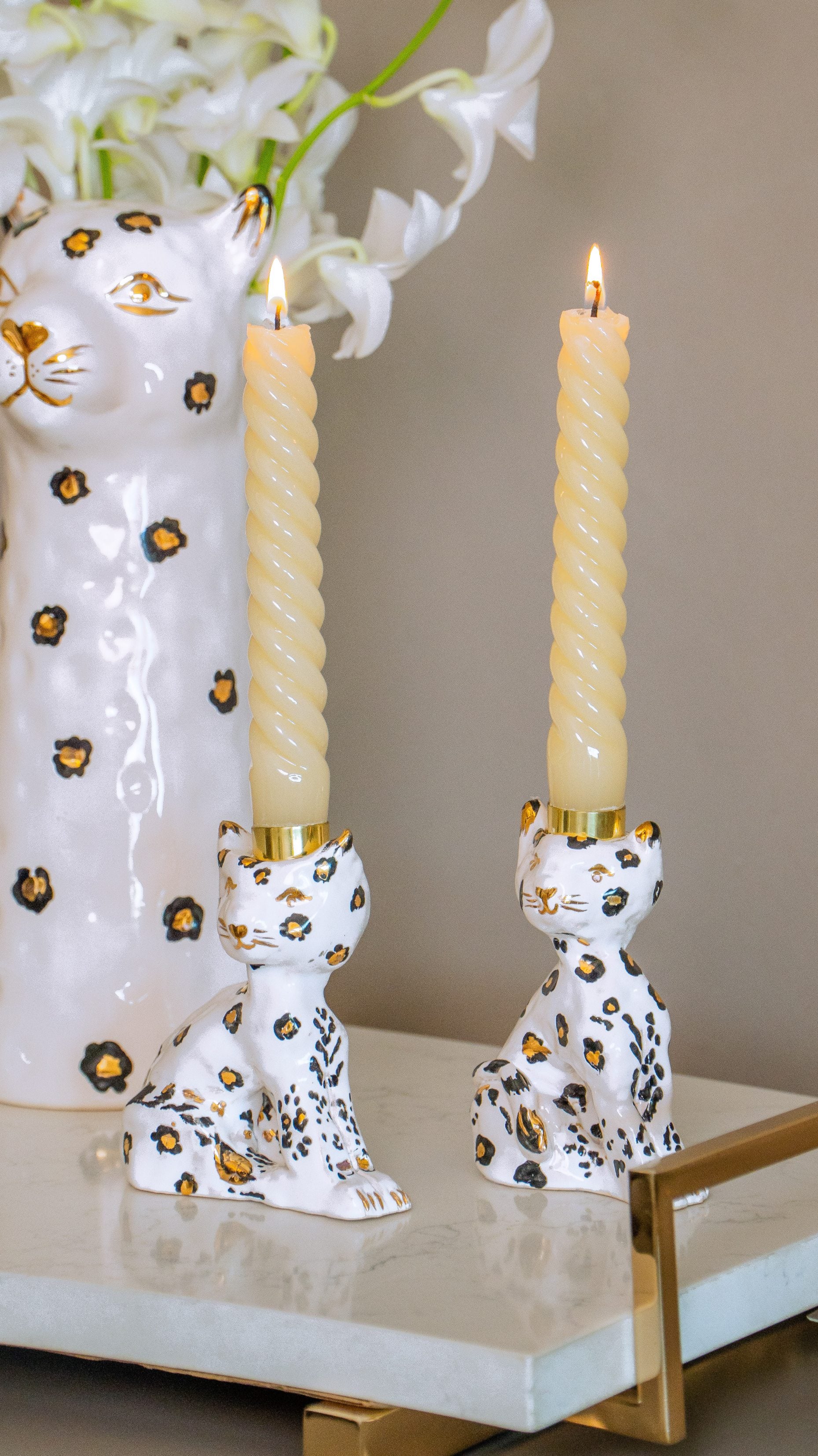 CASTIÇAL CERÂMICA ARTESANAL COM OURO LEOPARDO