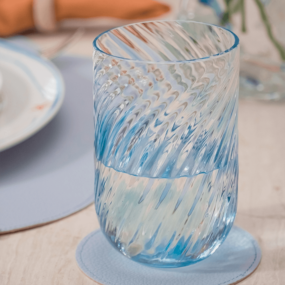 O Copo de Murano da coleção Flow apresenta um design contemporâneo e atemporal, com formas elegantes e um tom único de azul. Confeccionado com cristal de alta qualidade, cada copo é cuidadosamente soprado, resultando em uma peça delicada e luminosa.