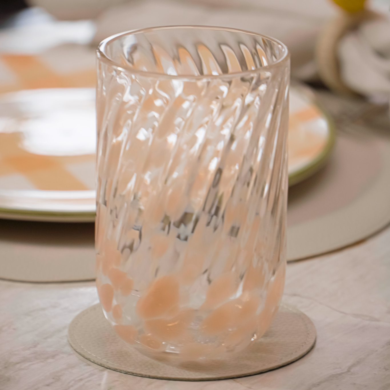 Com um design moderno e sofisticado, o Copo de Murano apresenta formas suaves e um tom de bege clássico e atemporal, criando um visual encantador. Feito com vidro de alta qualidade, cada copo é meticulosamente soprado, resultando em uma peça de extrema delicadeza e brilho. Perfeito para servir seus drinks favoritos ou como um item decorativo, o Copo de Murano é um verdadeiro tesouro artesanal.
