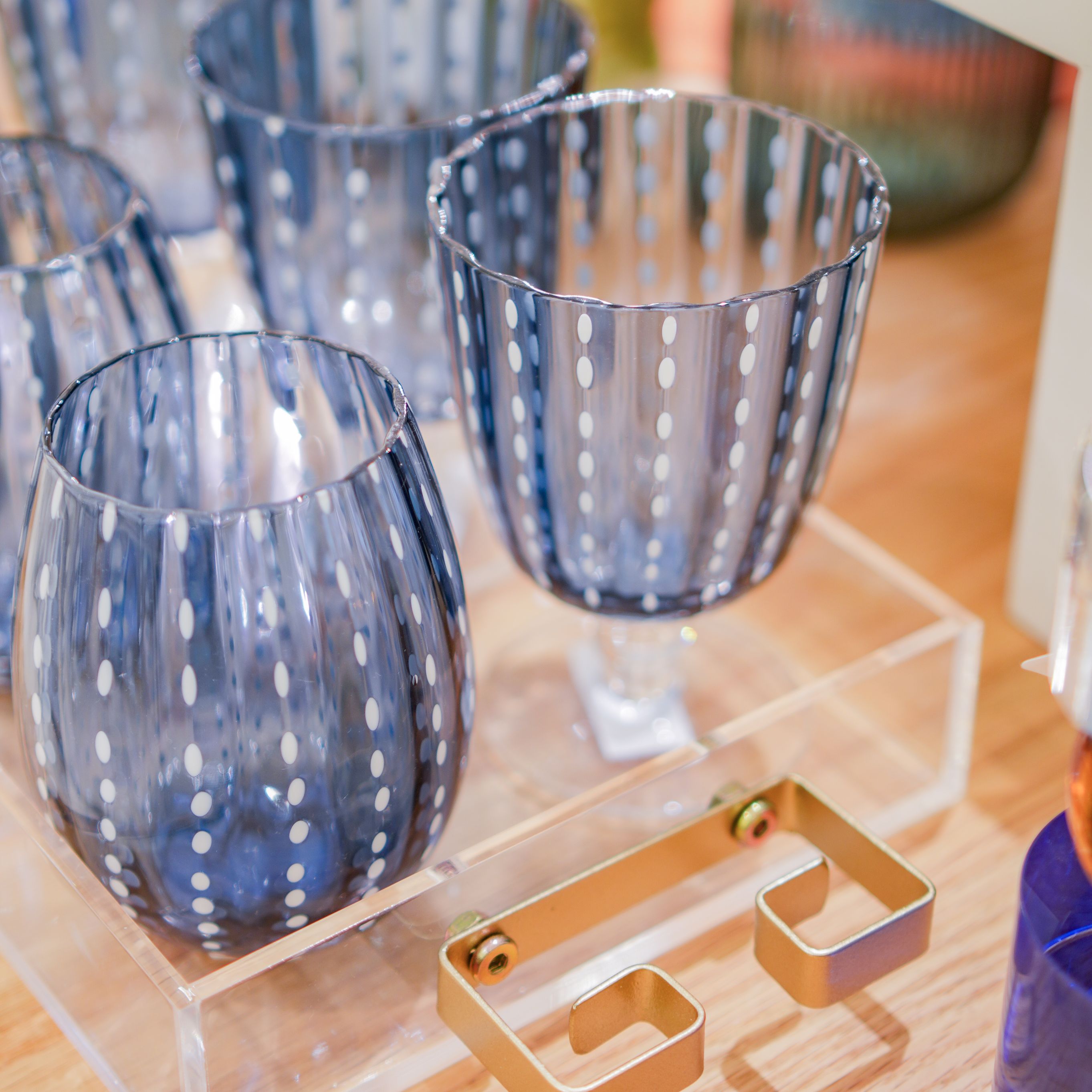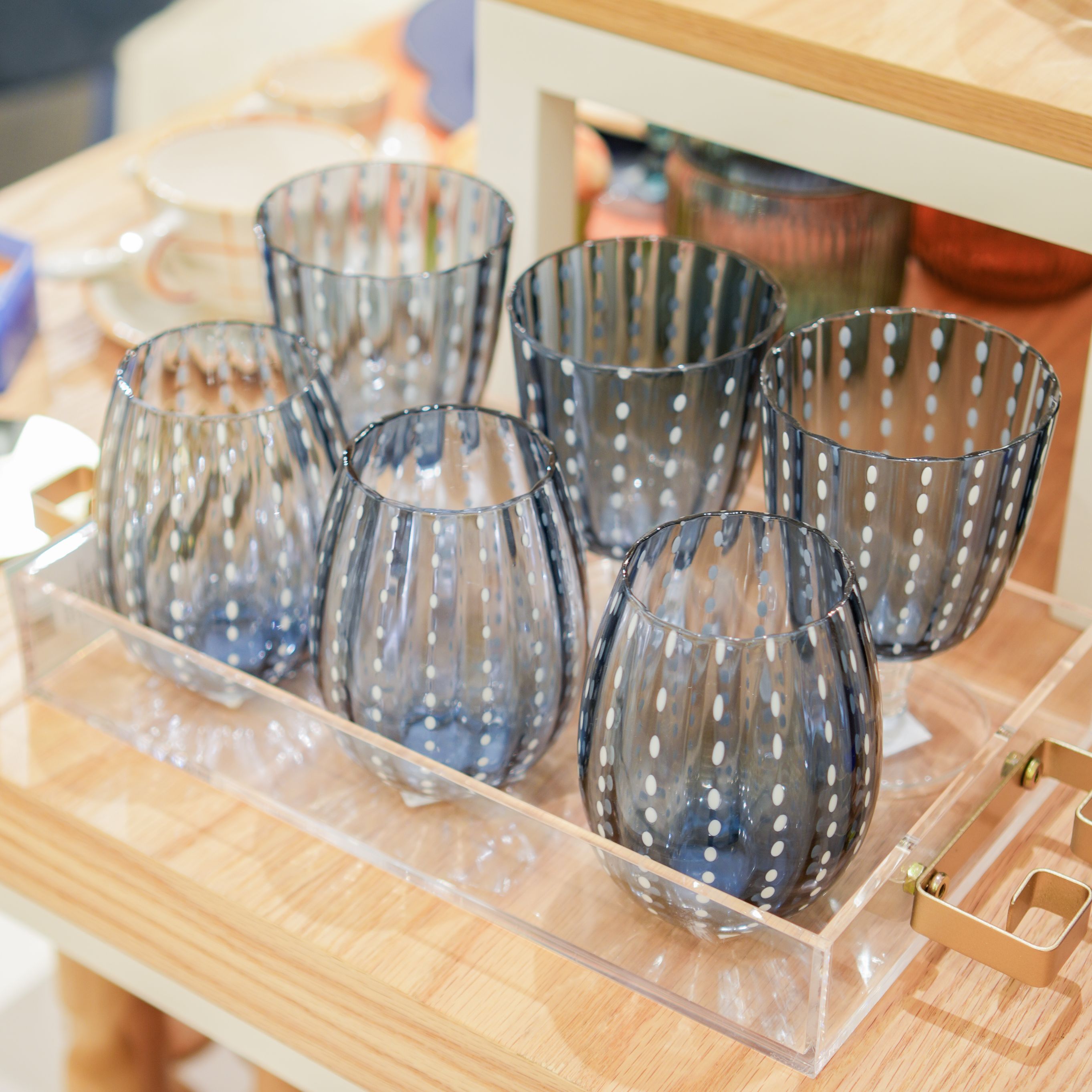 O Copo de Vidro Dots na cor azul é a definição de elegância contemporânea.