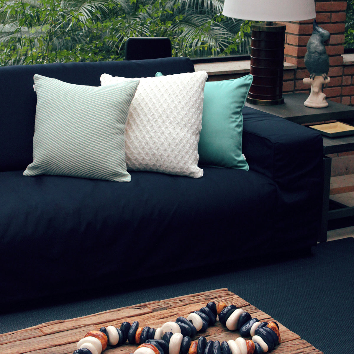 Combine com outras almofadas no mesmo tom e em tecidos diferentes como almofadas de tricot e/ou de algodão.