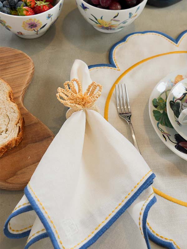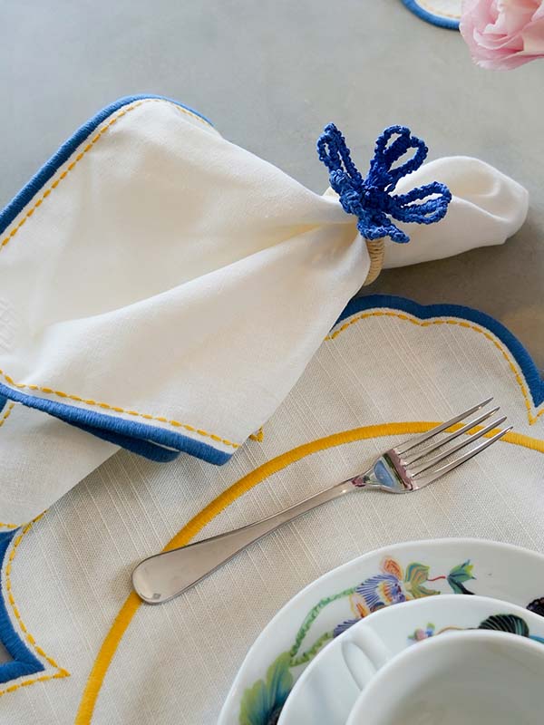GUARDANAPO DE LINHO FLOWERSCAPE AZUL E AMARELO