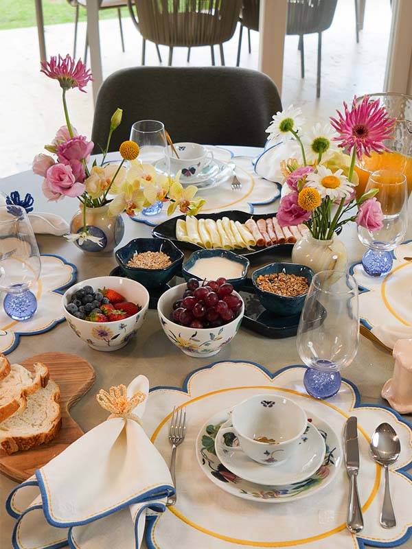 Inspirada no conceito de tablescape, a arte de transformar a mesa em um verdadeiro cenário, essa coleção une a exuberância das flores com composições encantadoras que elevam cada momento, tornando-os especiais e memoráveis.