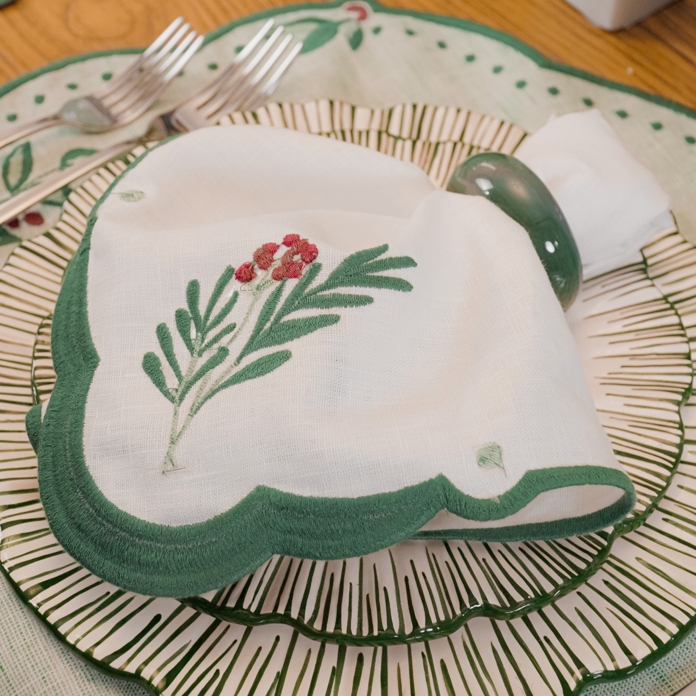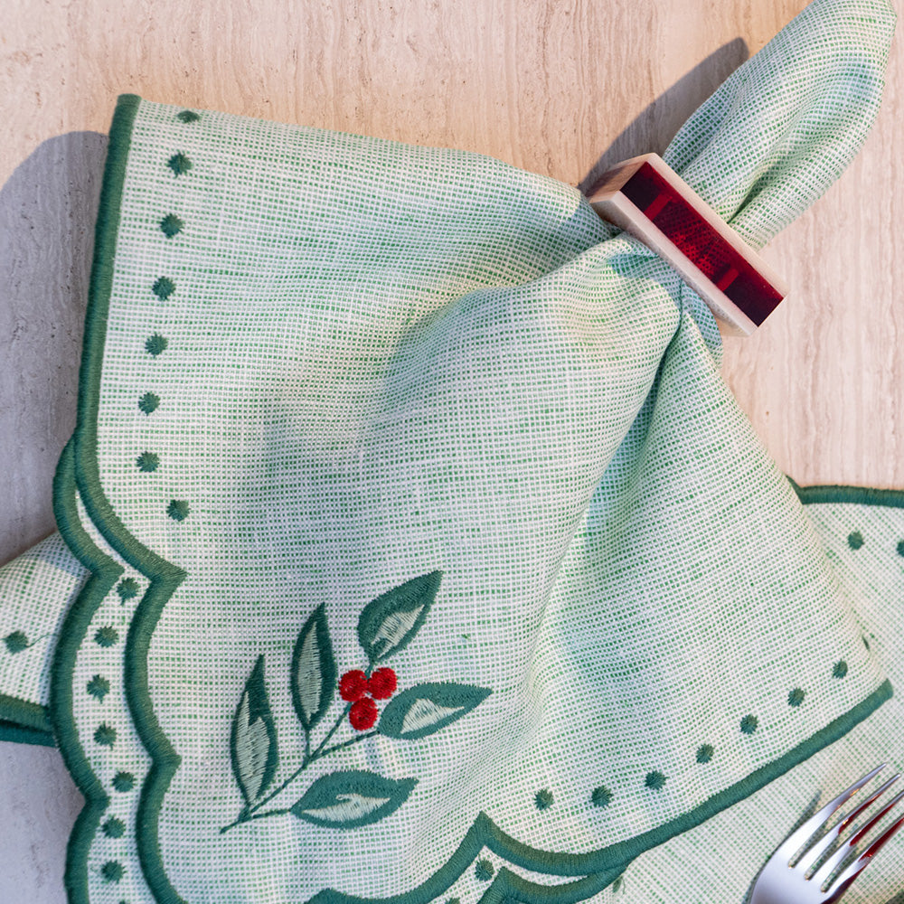 GUARDANAPO DE LINHO PURO NATAL AZEVINHO 50X50CM