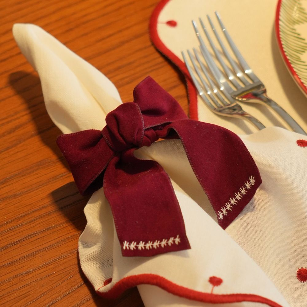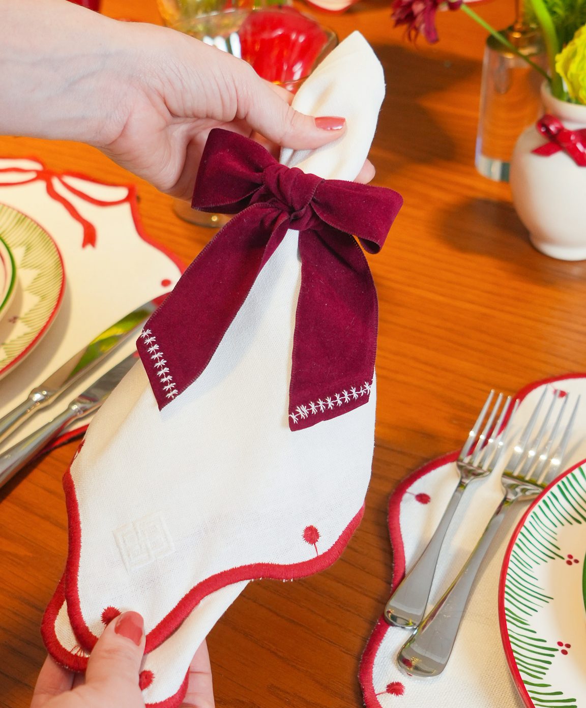 PORTA GUARDANAPO LAÇO DE VELUDO BORDADO