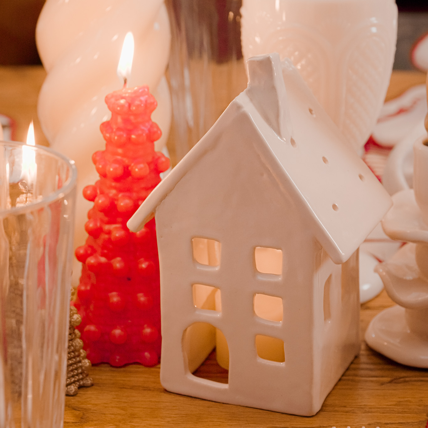 CASTIÇAL CERÂMICA ARTESANAL LAÇO VERMELHO NATAL
