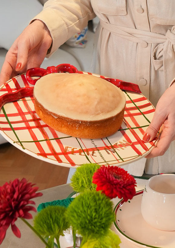 PRATO SOBREMESA CERÂMICA FEITO À MÃO BLOSSOM VERMELHO NATAL