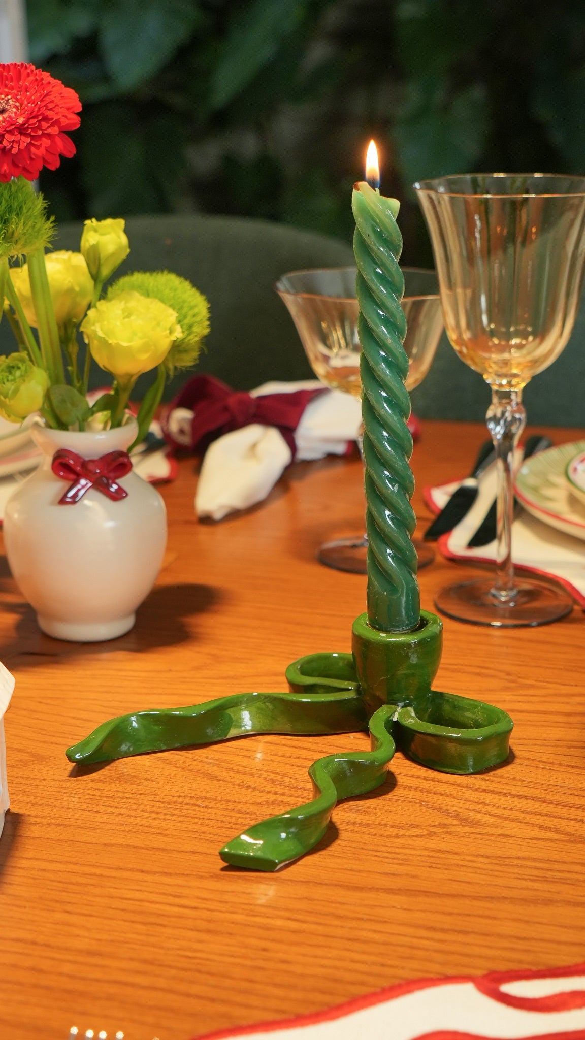 CASTIÇAL CERÂMICA ARTESANAL LAÇO VERDE NATAL