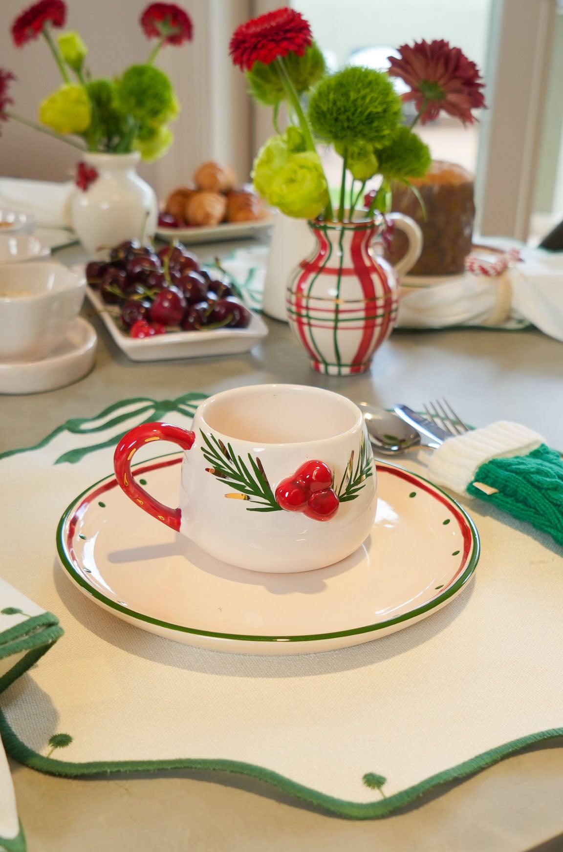 CANECA DE CERÂMICA FEITA À MÃO AZEVINHOS NATAL