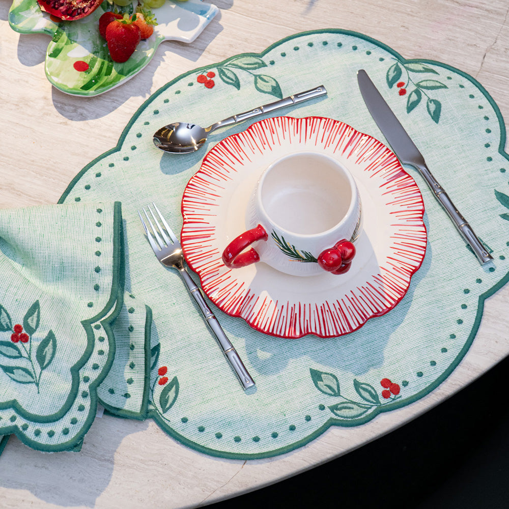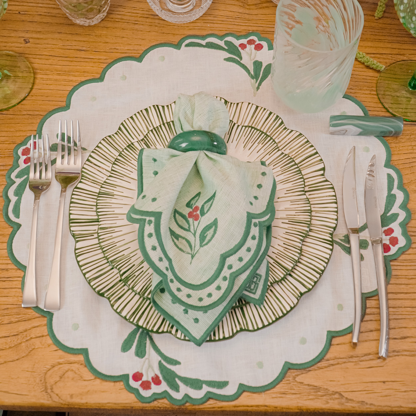 JOGO AMERICANO LINHO PURO ÁRVORE DE NATAL VERDE
