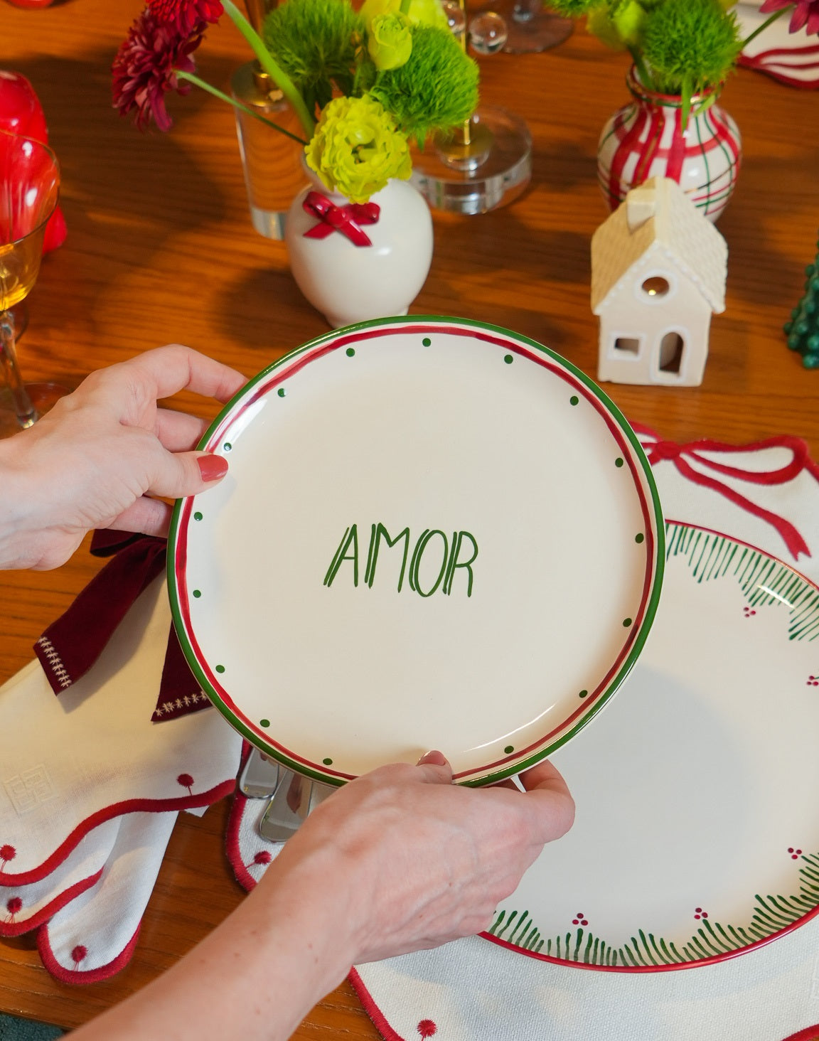 PRATO RASO CERÂMICA PINTADO À MÃO WISHES NATAL