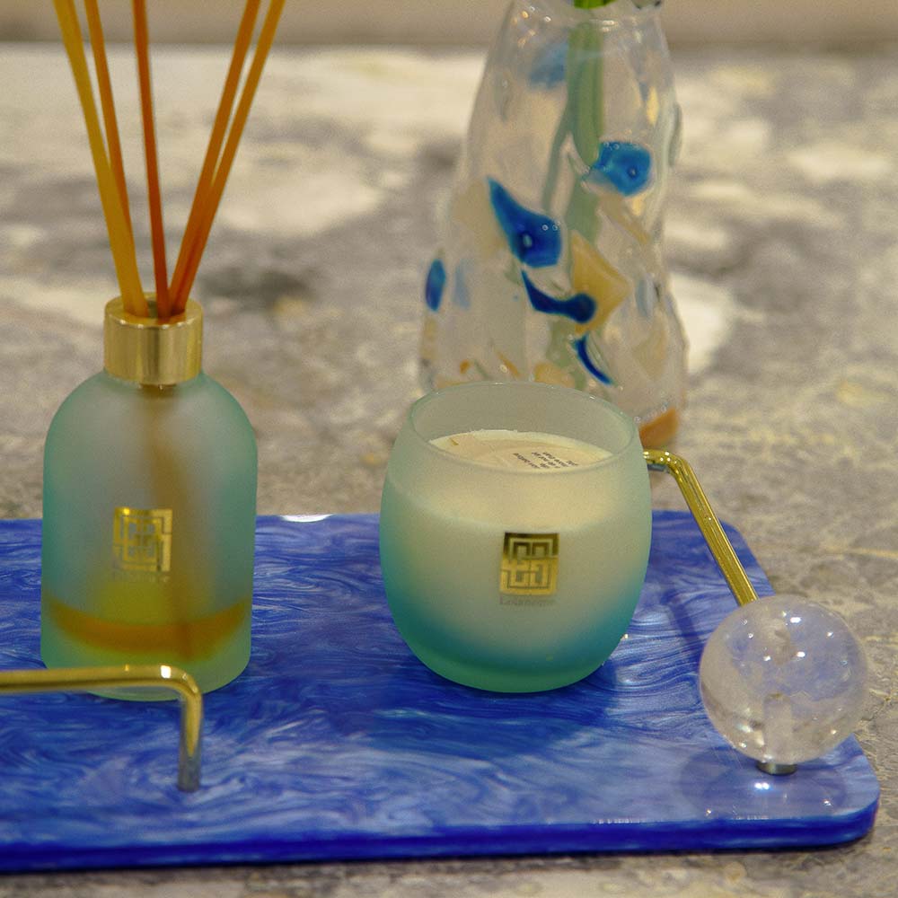 Apresentamos a Bandeja Retangular Cristal Azul, uma deslumbrante peça autoral que faz parte da nossa exclusiva coleção Alquimia. Ideal para quem ama reunir amigos e família para refeições prazerosas, esta bandeja é um convite à elegância e funcionalidade em sua casa. Com detalhes que remetem a pedras lapidadas, cada bandeja é um produto artesanal que adiciona um toque único à sua decoração.