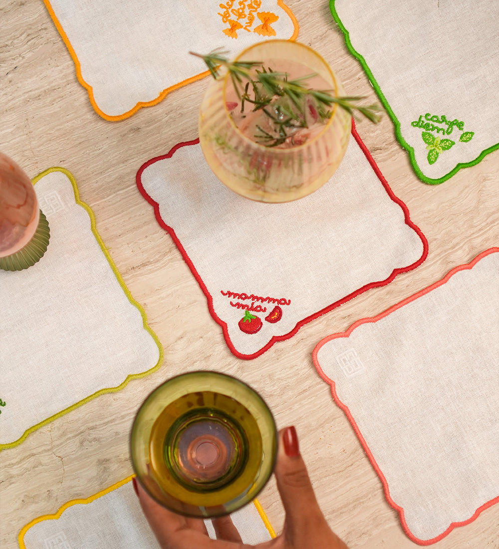 SET GUARDANAPO DE COQUETEL DE LINHO BELLA ITALIA 6 UN