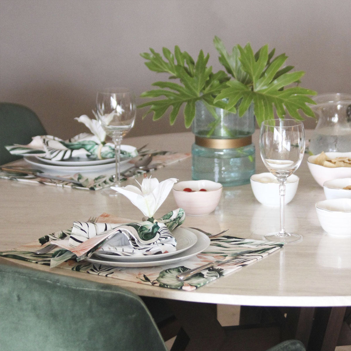 JOGO AMERICANO ESTAMPADO DE ALGODÃO TROPICAL VERDE E ROSA 46X37 CM