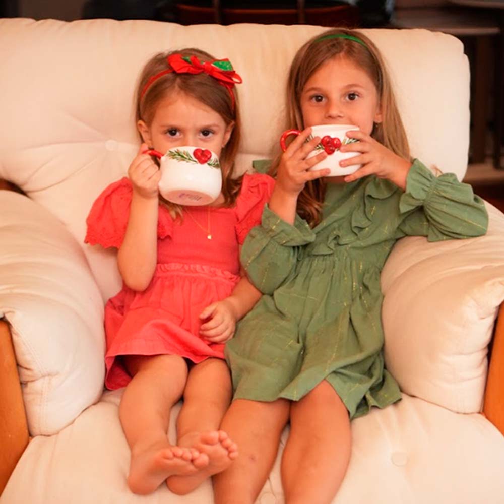Essa é a cancena mais linda que você vai ver, uma verdadeira obra de arte. Feita no torno de forma artesanal, cada detalhe é pintado à mão com cuidado e dedicação. Os azevinhos aplicados na xícara trazem o espírito natalino, enquanto os detalhes em ouro na folha e aba adicionam um toque de sofisticação.